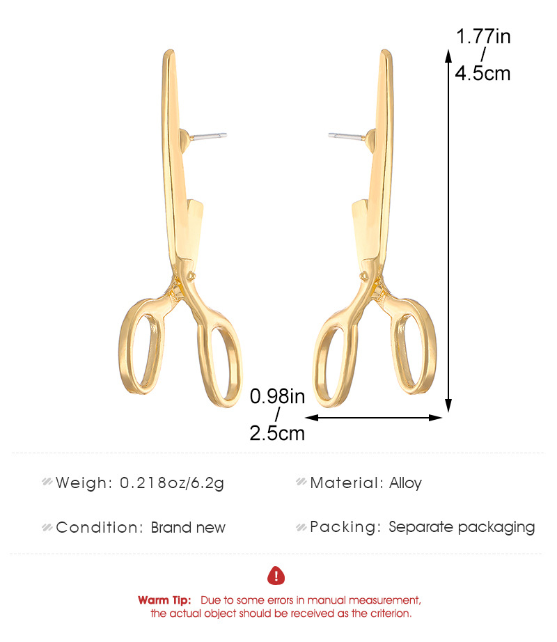 Crafted from high-quality alloy, these ear studs are available in two elegant colors: 01 KC Gold and 02 Ancient Tin. The electroplating process gives them a radiant finish, ensuring they stand out as a stylish accessory. The unique scissors design adds an element of fun and creativity, making these earrings a great choice for both casual and formal occasions.