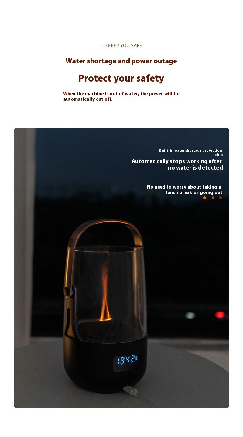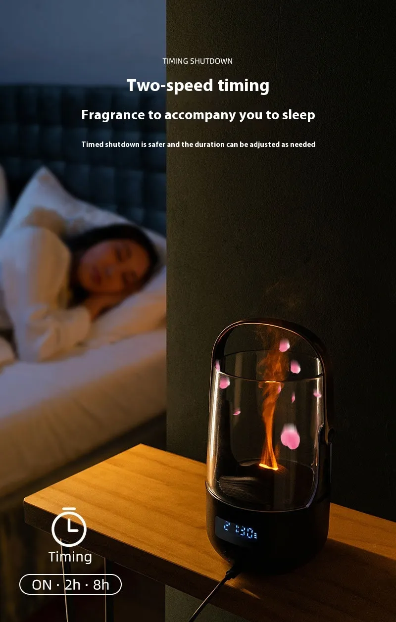 This feature is especially popular for creating a cozy atmosphere in living rooms, bedrooms, and home offices. The gentle flame effect provides a perfect visual companion to the aromatic benefits of the diffuser.