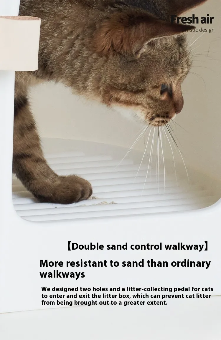 Cats value their privacy when using the litter box, and the fully enclosed design ensures your pet feels secure. The enclosed structure not only provides a sense of privacy but also helps reduce anxiety in more sensitive or shy cats. This can encourage your cat to use the litter box more regularly, improving their hygiene habits.