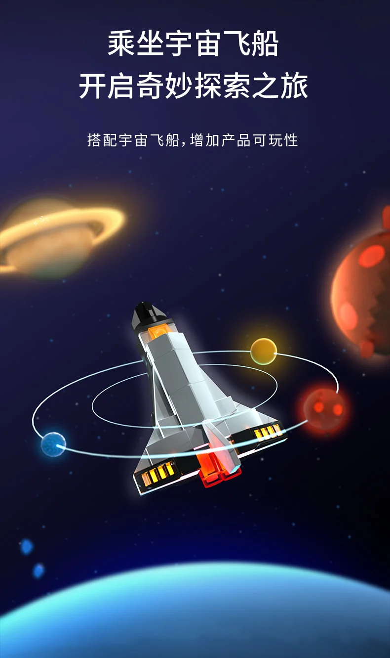 Interactive Play and Display After completing the build, children can enjoy interactive play, watching their solar system