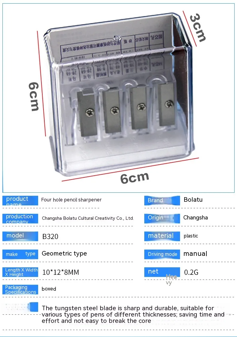 Color: four holes pencil sharpener, 4 blades plus screwdriver
