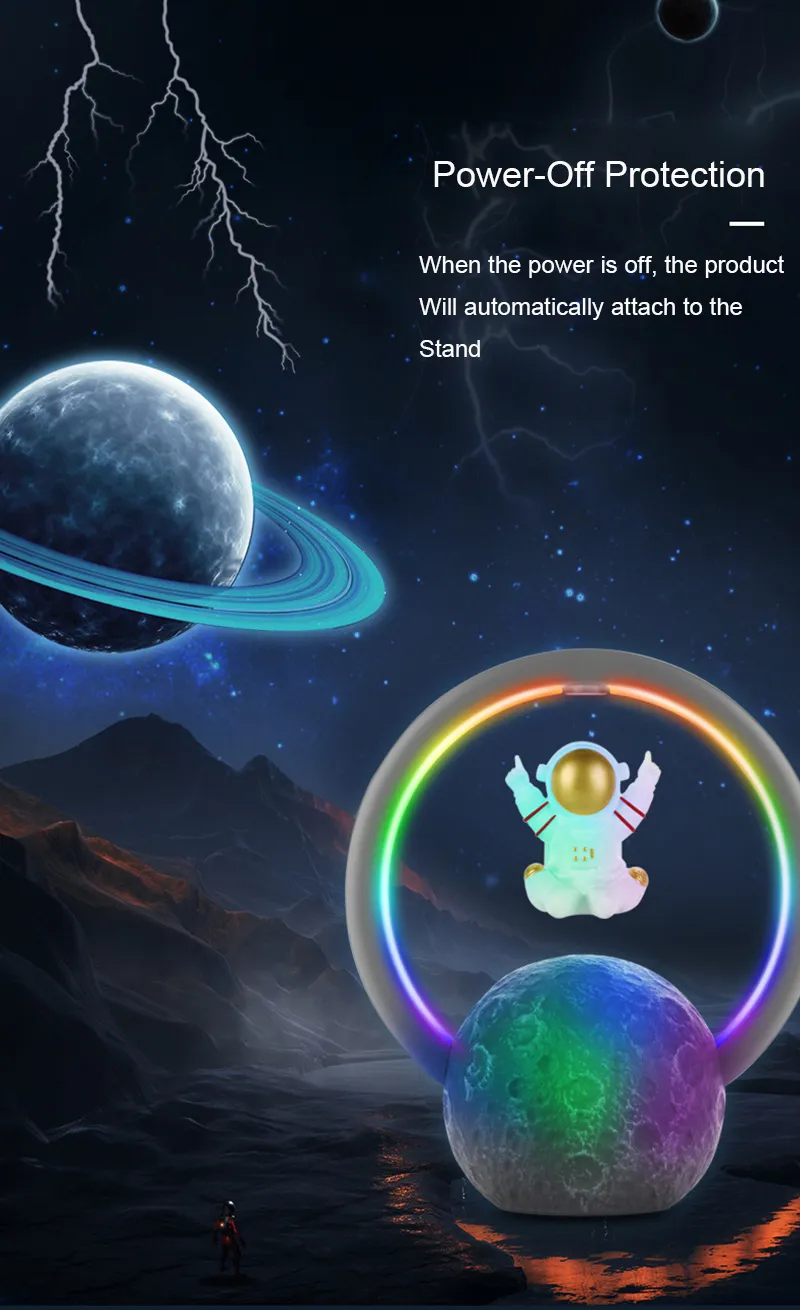 - Magnetic Levitation Design: The astronaut figure floats mid-air, creating a mesmerizing display that defies gravity.