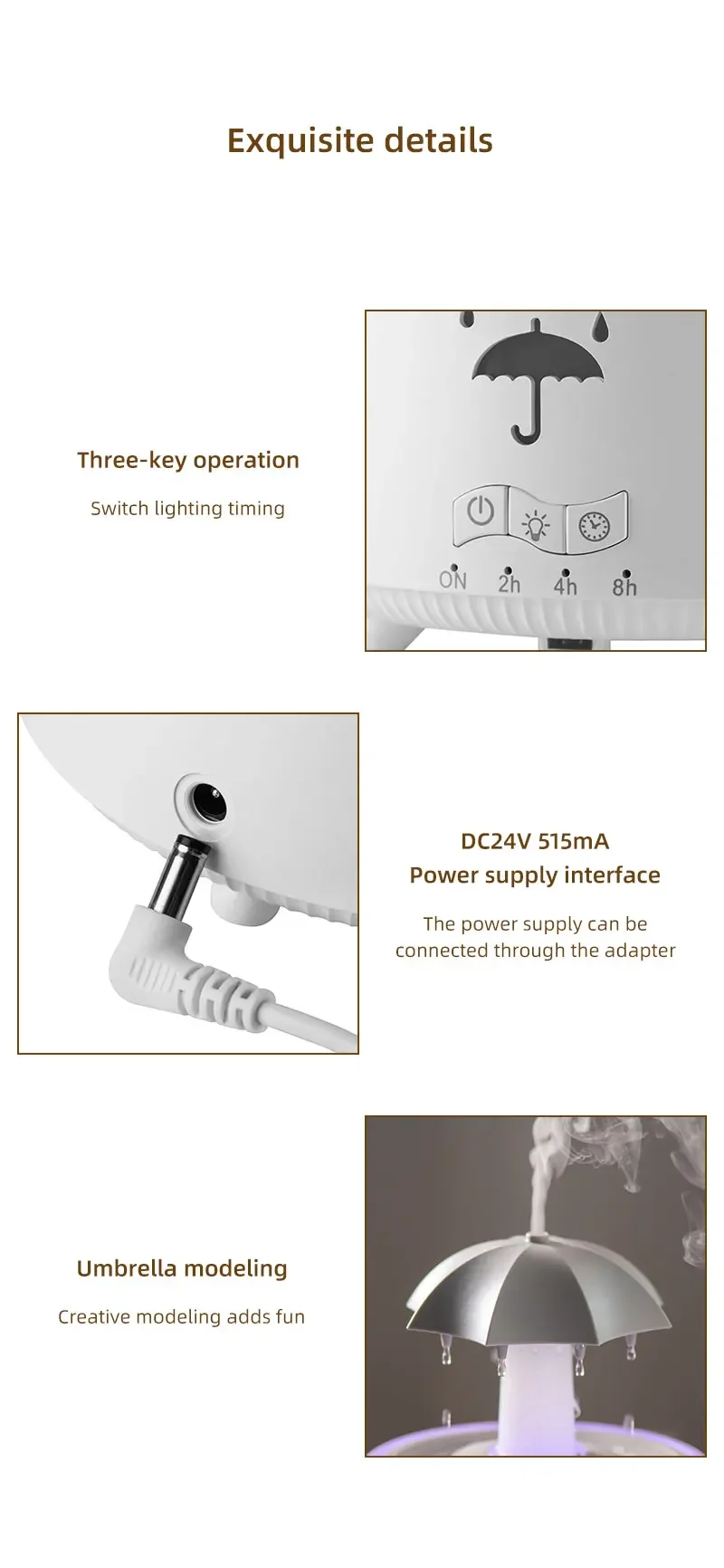 - Innovative Design: This product features a unique umbrella-shaped humidifier that mimics rainfall, adding a touch of whimsy to any room.