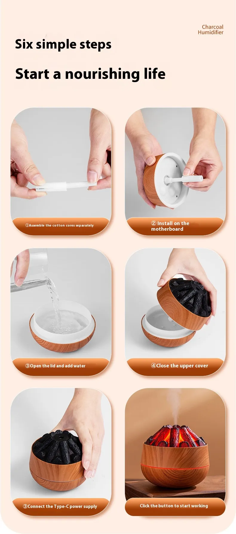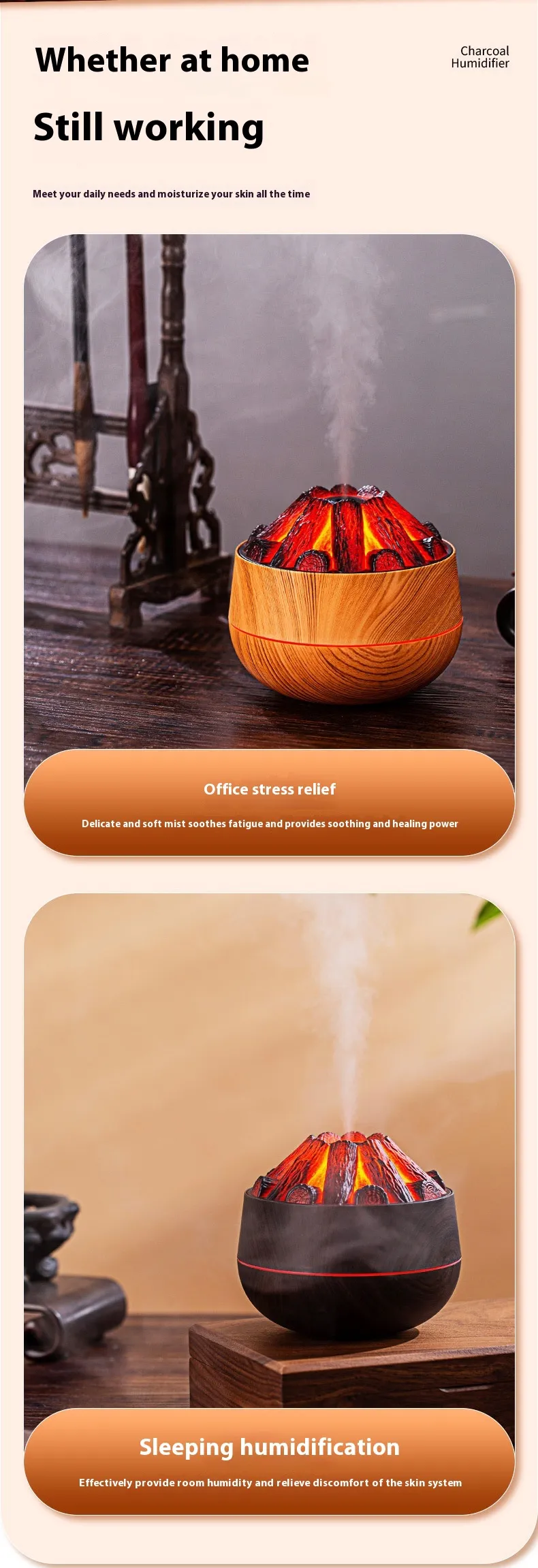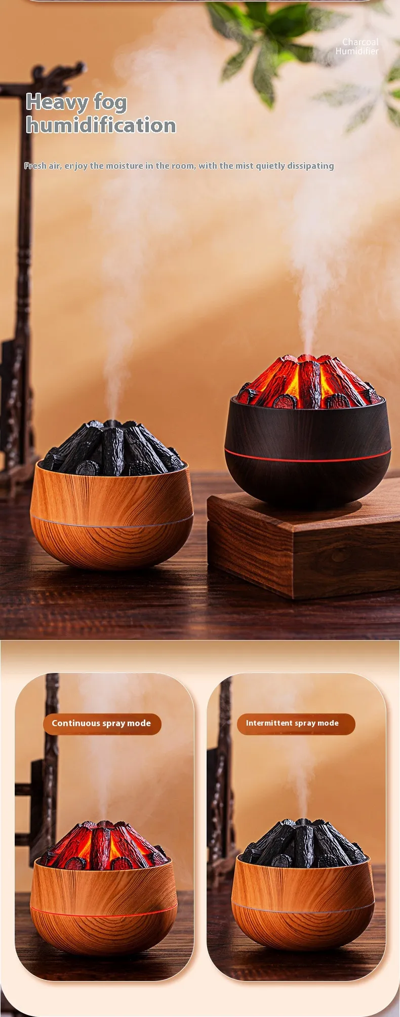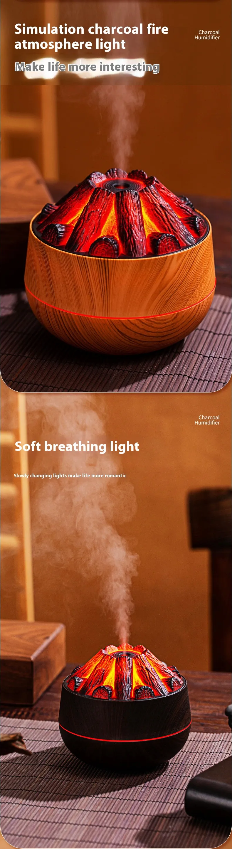 Color: light wood grain warm charcoal humidifier, deep wood grain warm charcoal humidifier