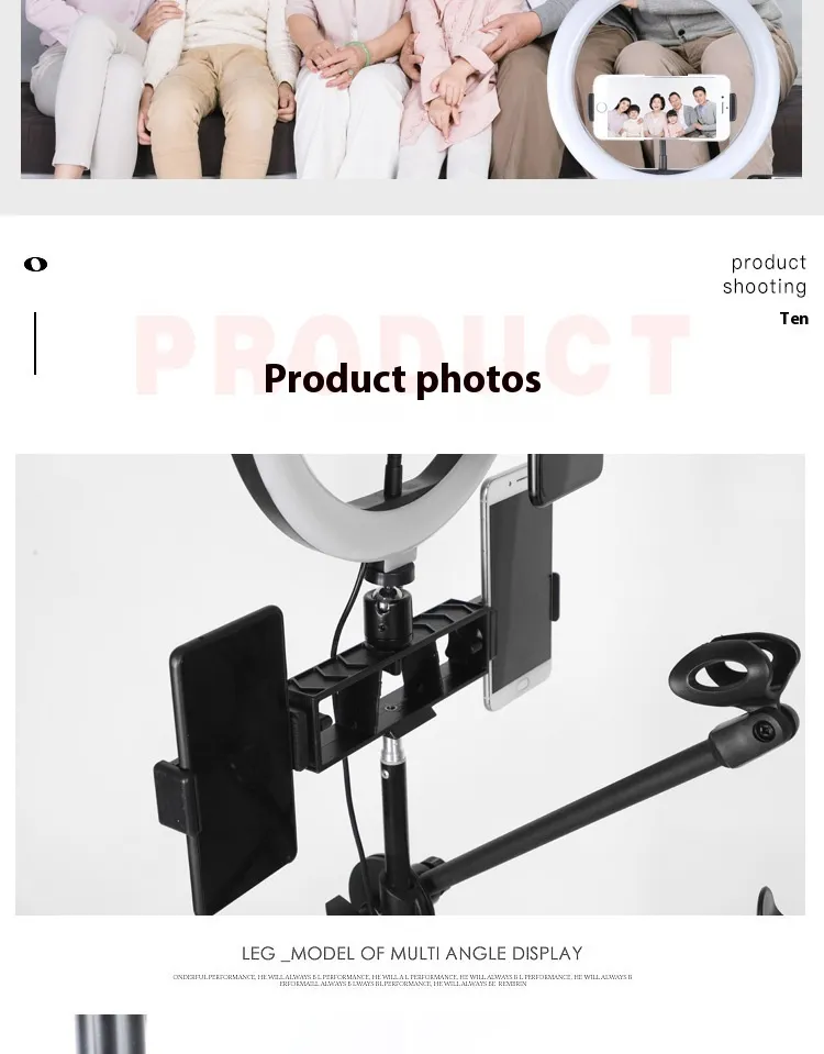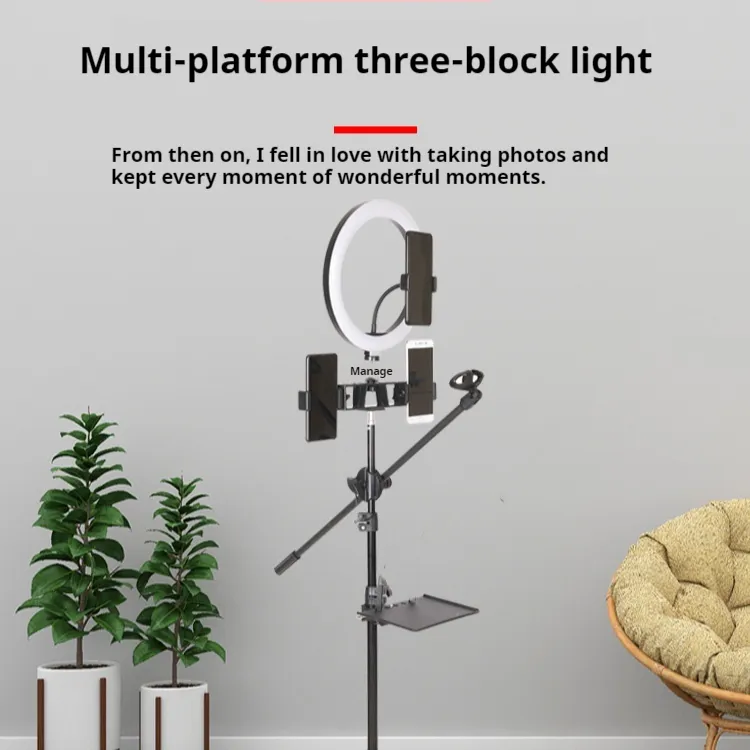 Cross Bar Tray Storage Rack With Microphone Beauty Fill Light Photography Floor Mobile Phone Bracket