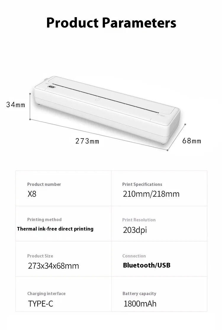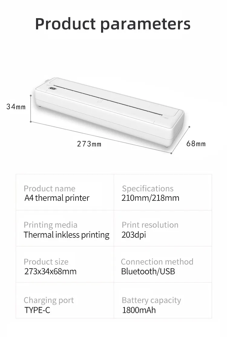The Cross-Border A4 Printer is a cutting-edge, multi-functional printer designed for both home and office use, offering seamless connectivity and high-quality printing on A4-sized documents. With its Bluetooth connection, wireless capability, and portable design, this printer offers a range of features that make it perfect for users who demand convenience, flexibility, and high-performance from their printing devices.