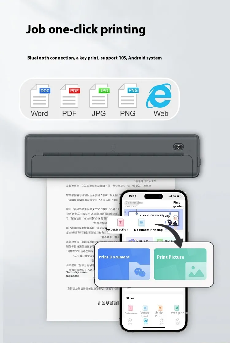 The Cross-Border A4 Printer takes the hassle out of printing with its Bluetooth connection that supports seamless wireless printing from both mobile phones and computers. Gone are the days of tangled cables or complicated setup procedures—simply connect your device via Bluetooth, and you’re ready to print. Whether you’re printing from an iPhone, Android phone, or laptop, this printer allows for instant printing without the need for any physical connections.