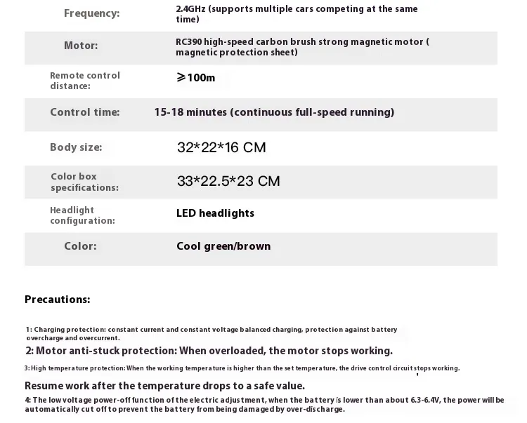 Frequency: 2.4GHz (supports multiple vehicles competing in the same field)