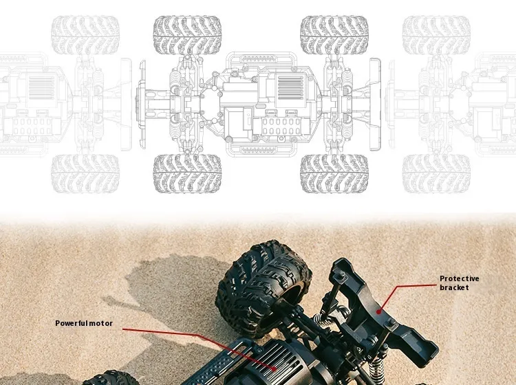 Designed for off-road enthusiasts, this RC car features a robust four-wheel drive (4WD) system that provides exceptional traction and stability. The 4WD setup ensures that the car can tackle a variety of challenging surfaces, from gravel roads and sand dunes to rocky paths and muddy trails. No matter how tough the terrain, the Cross-Border Off-Road Car can handle it all with ease.