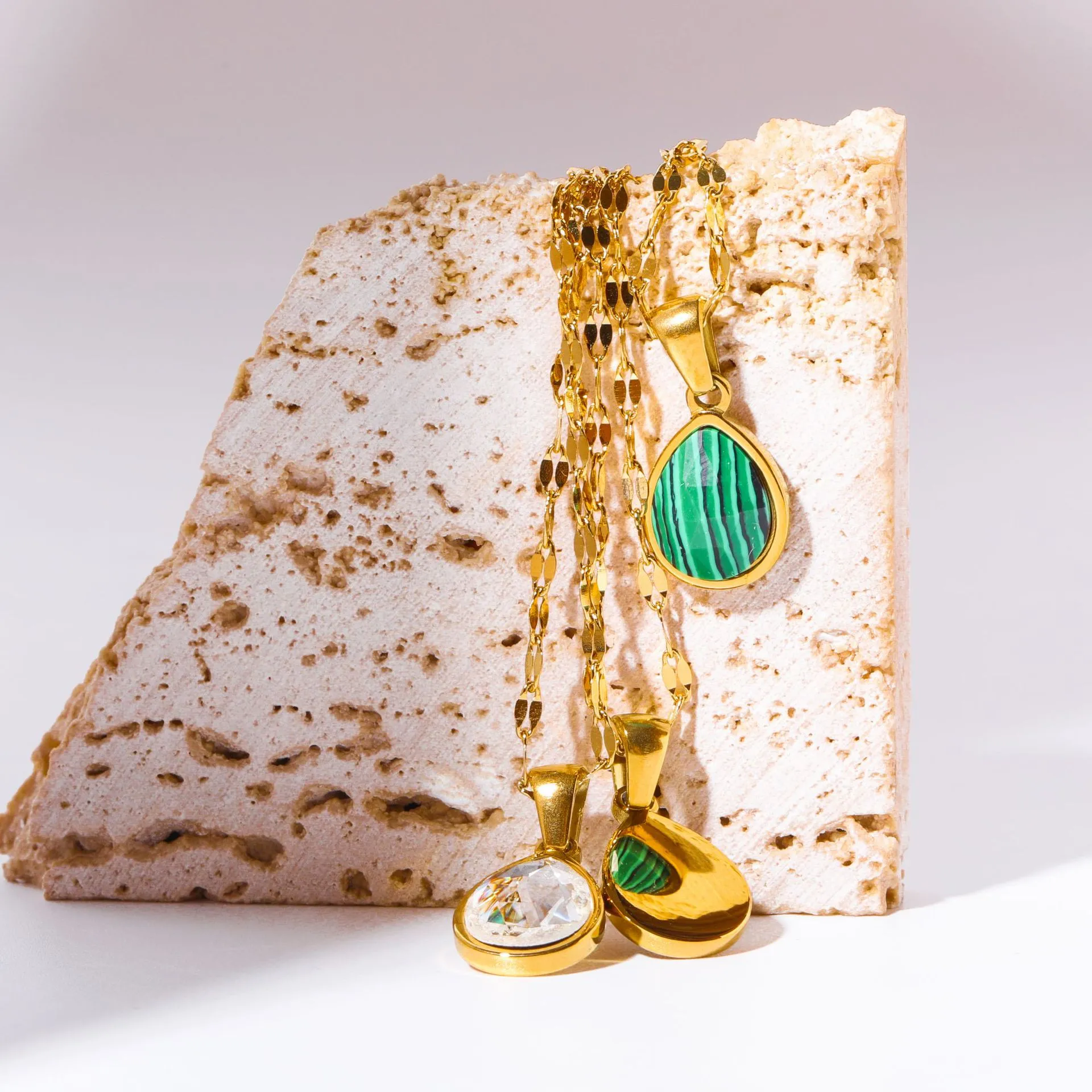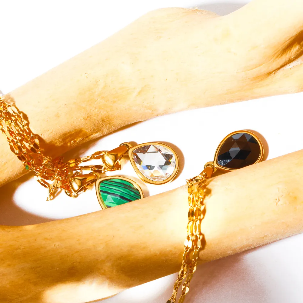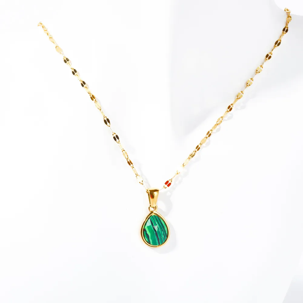 Why Choose the Cross-border Malachite Necklace Titanium Steel Water Drop Pendant Zircon Natural Stone Clavicle Chain Gold Plated Color Ornament?