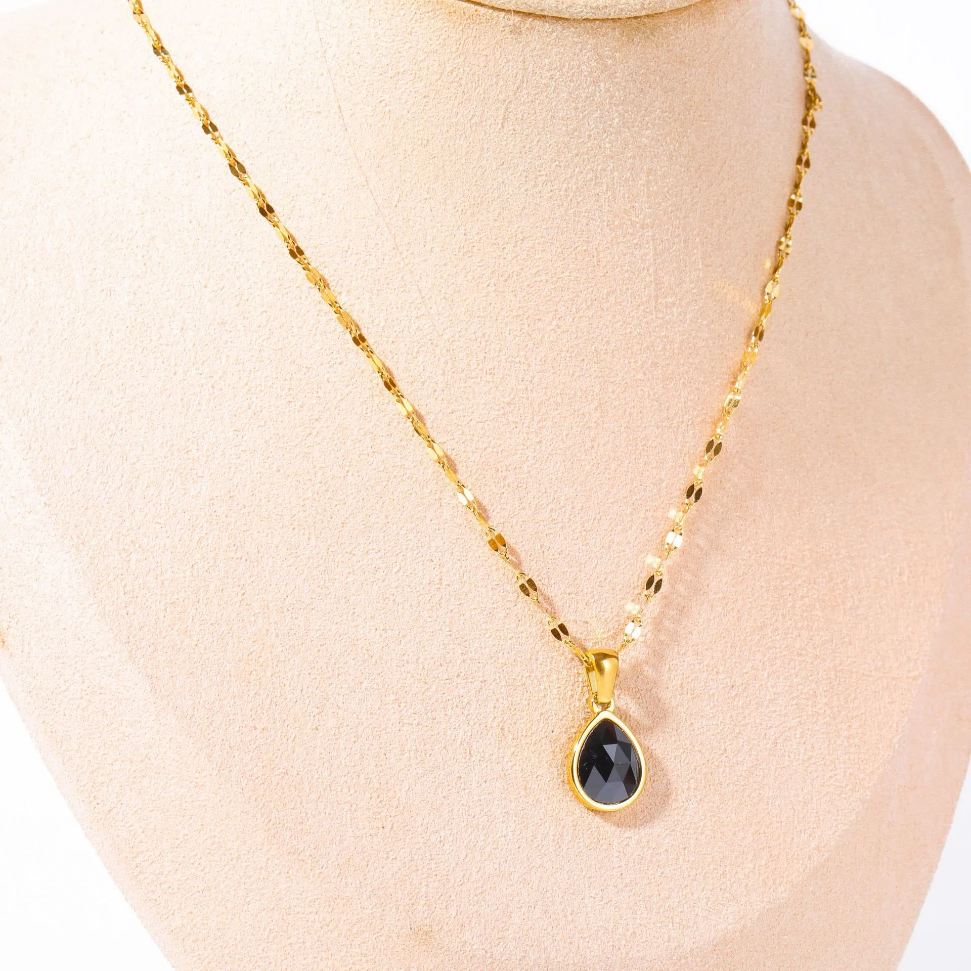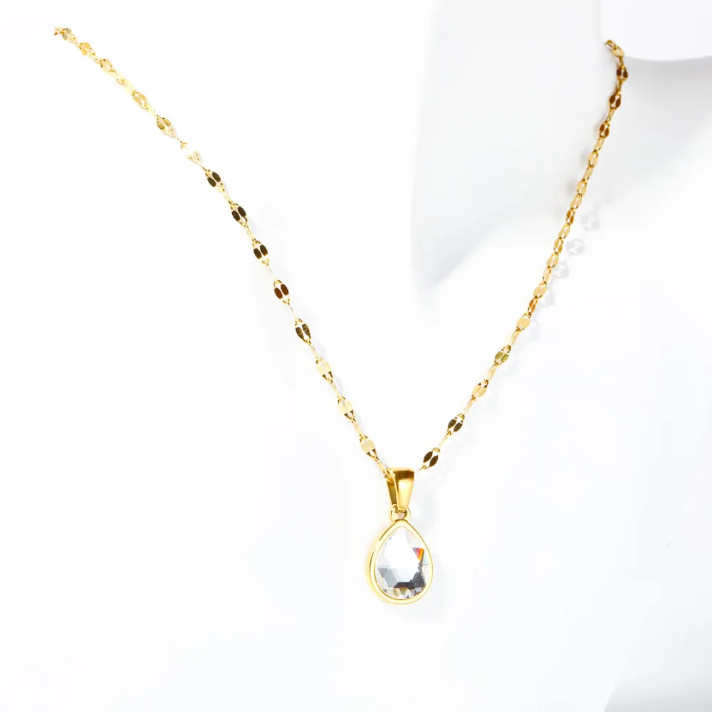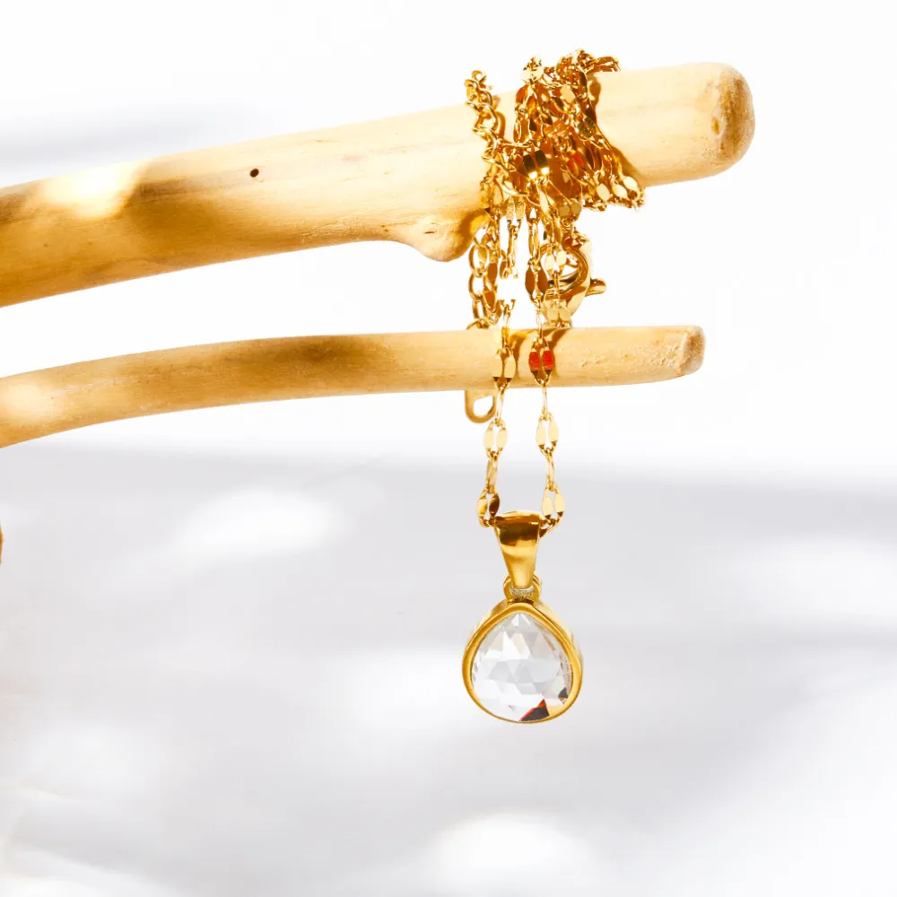 The water drop pendant also ensures that the necklace drapes beautifully along the clavicle, drawing attention to the neckline and adding an additional layer of charm to your look. This sleek shape is perfect for showcasing the natural beauty of the stones while remaining understated enough for everyday wear.