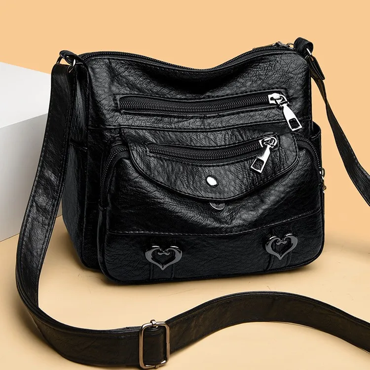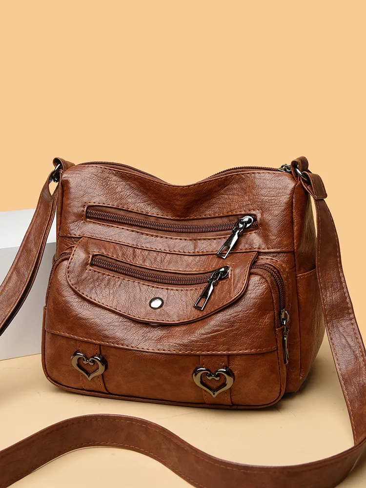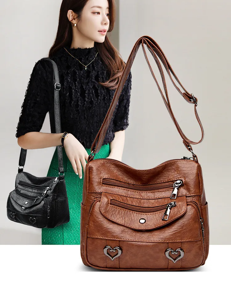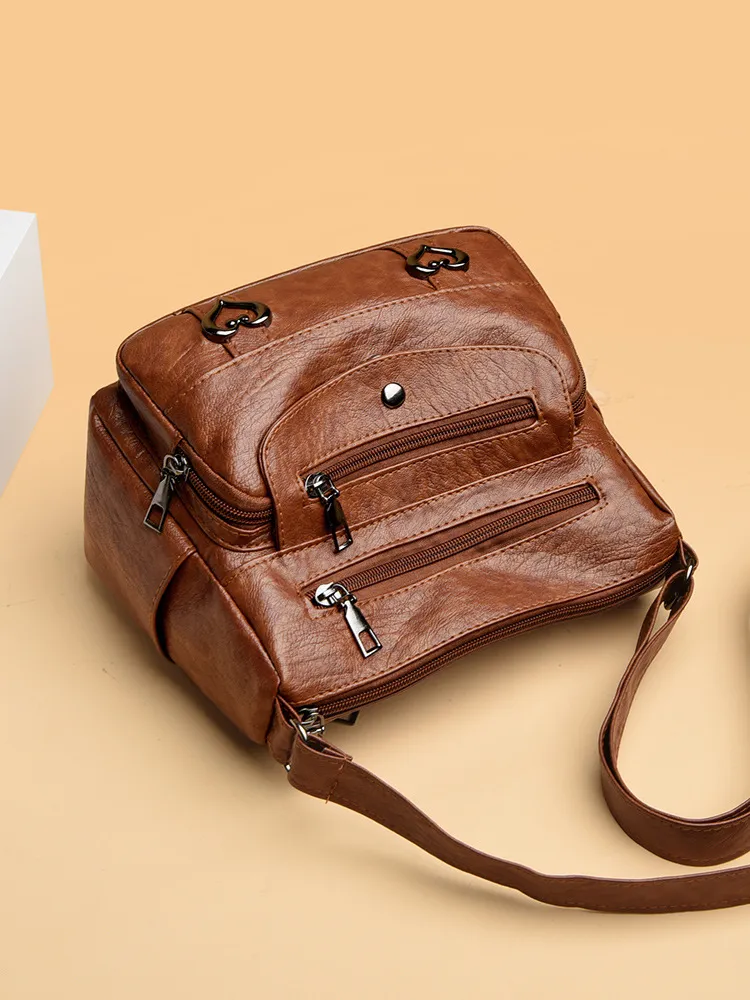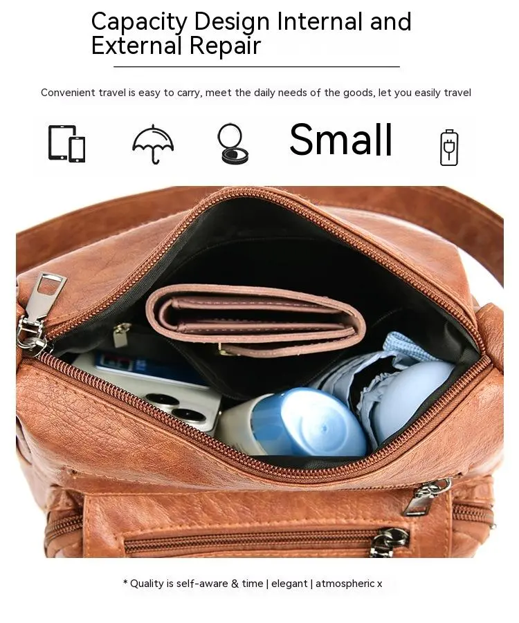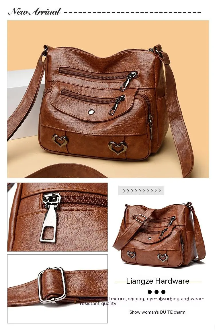 Crossbody Bag Soft Leather Textured Retro Large Capacity Middle-aged