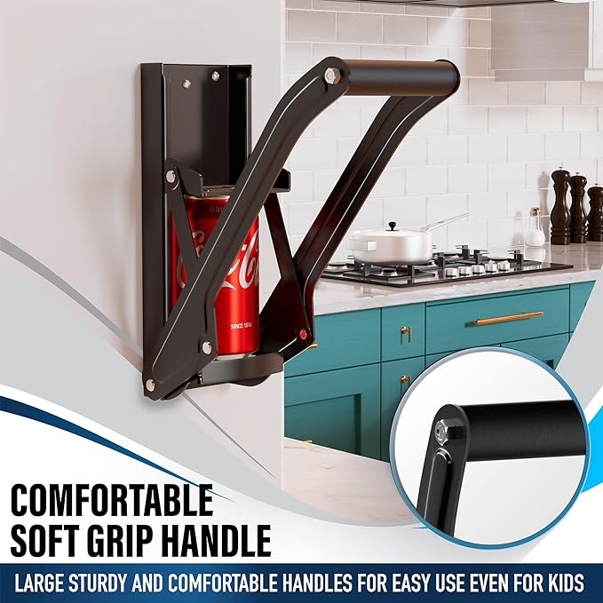 - Manual can crusher and bottle opener is mountable on walls and tables to compact aluminum beverages and soda cans, while also opening beer bottle caps.