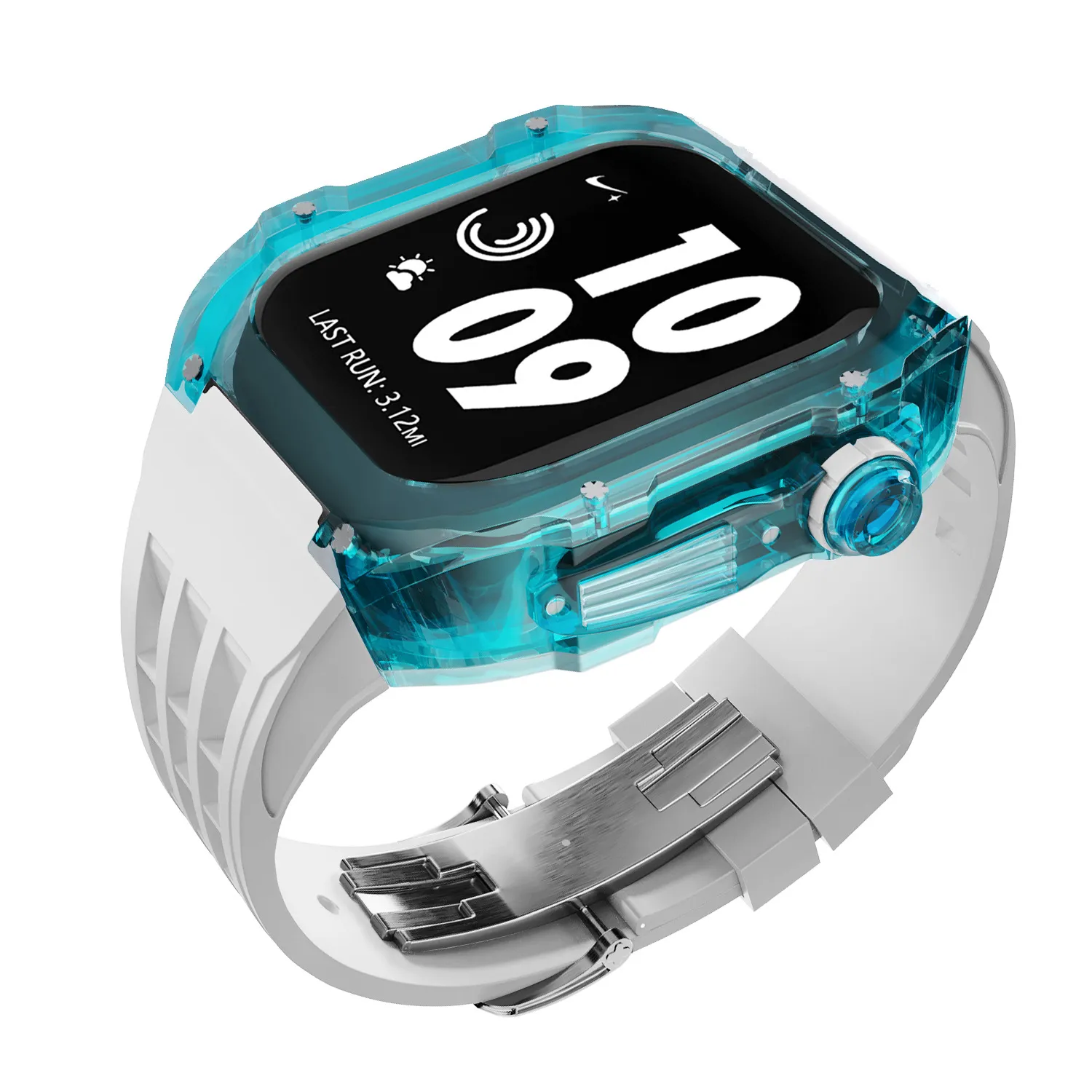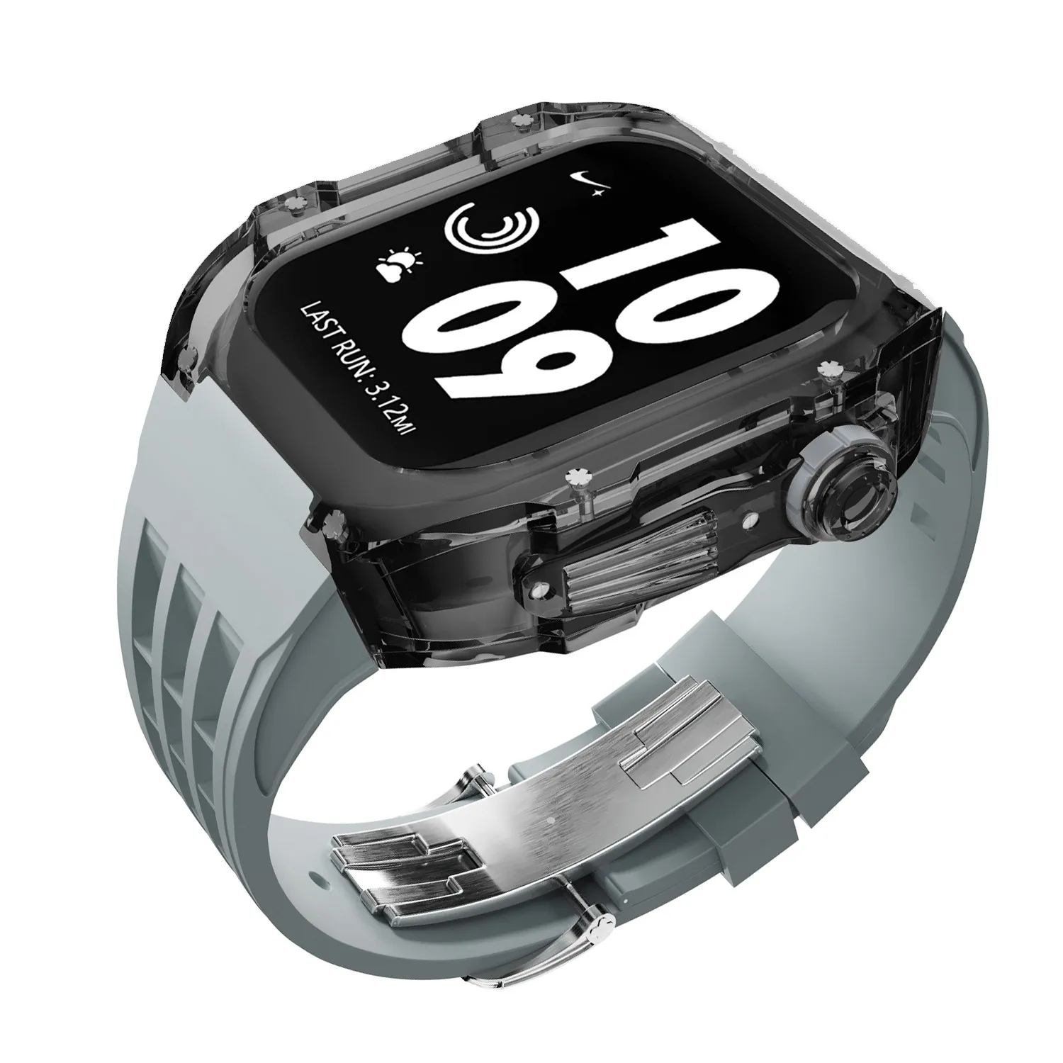Sleek and Modern Design: Combines a transparent case with a fluorine rubber strap to provide a
