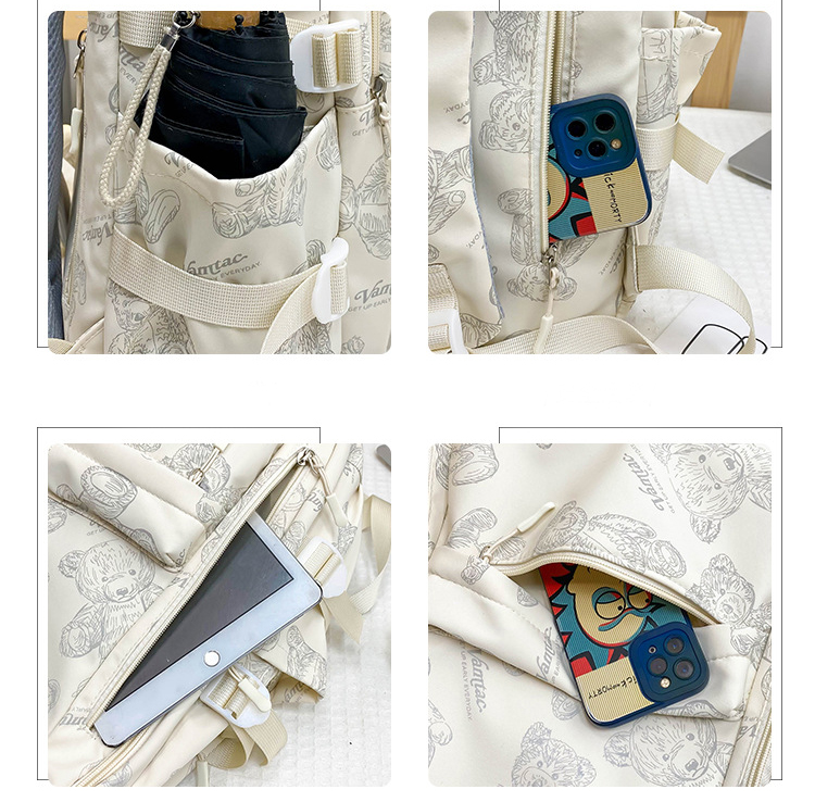 Cute Bears Print Backpack Fashion Versatile Large Capacity Travel Bags Women