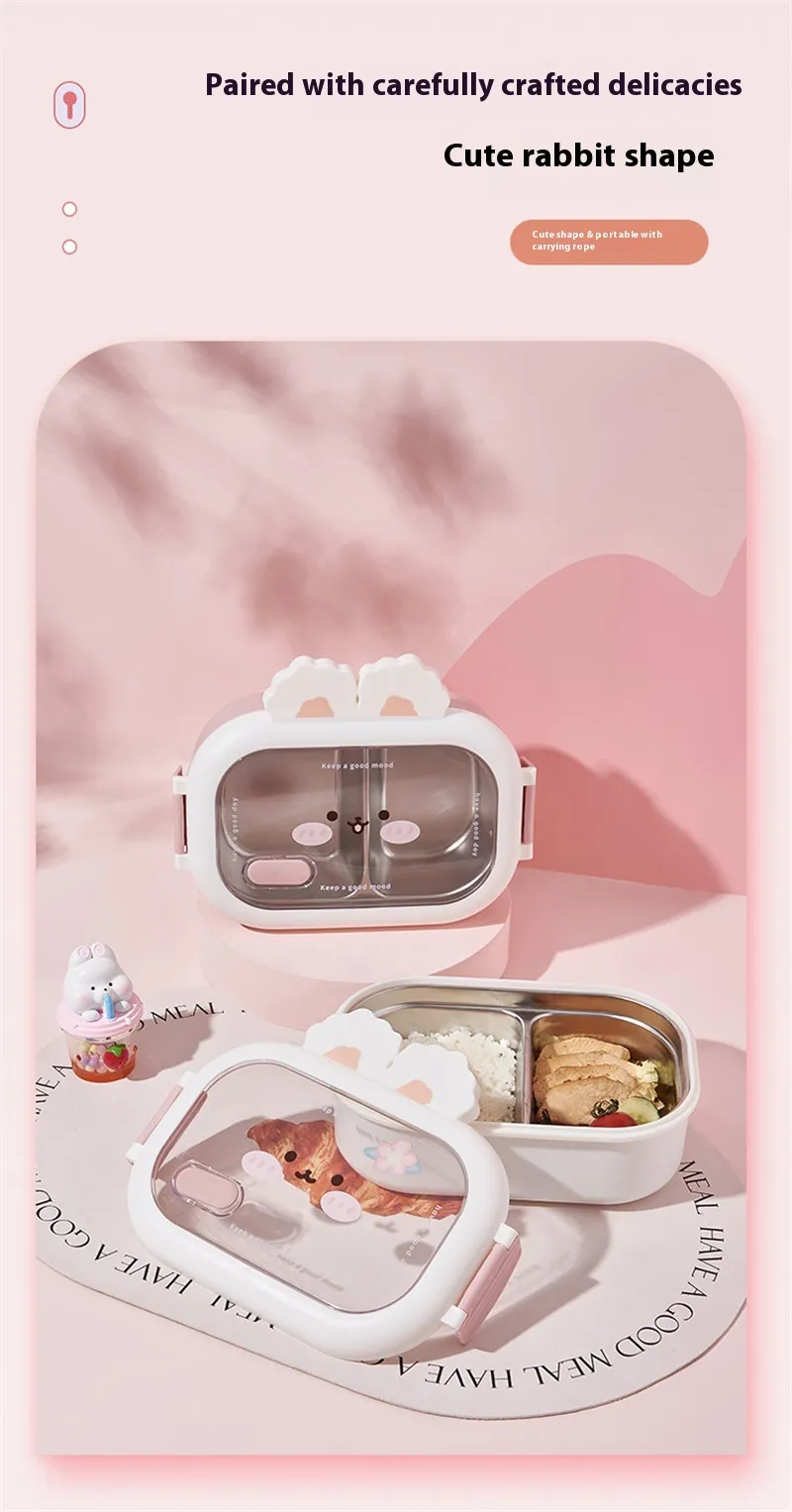 Cute Bunny Stainless Steel Creative Compartment Student Lunch Box