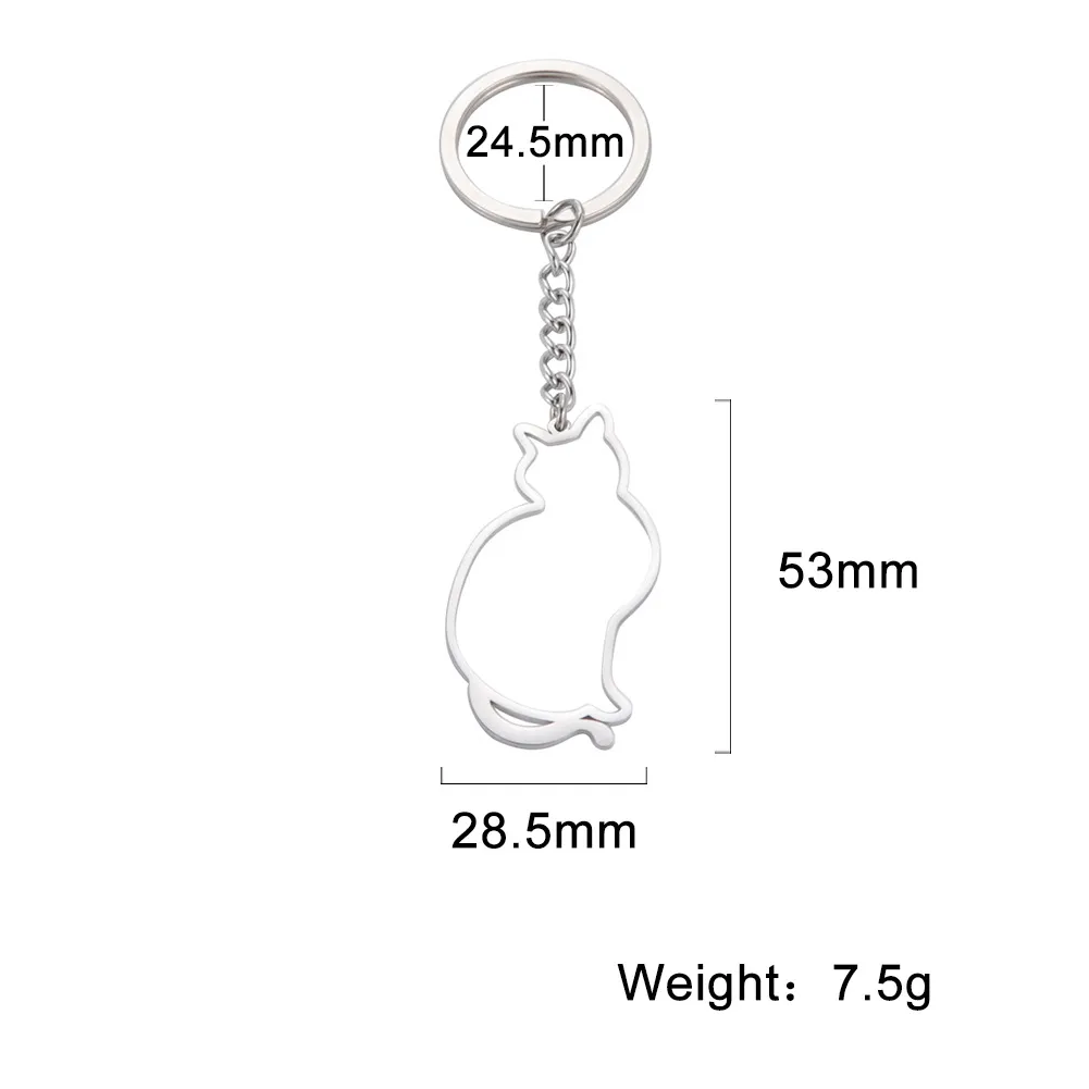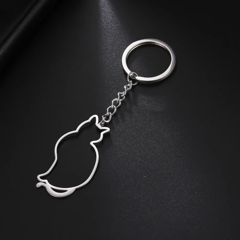 Cute Cartoon Animal Hollow Cat Pendant 304 Material Stainless Steel Key Ring