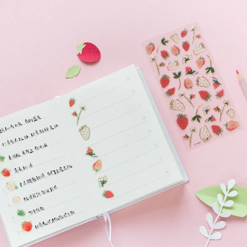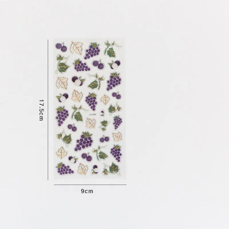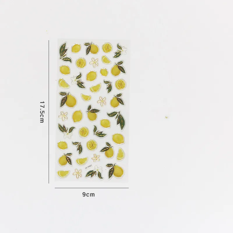 In conclusion, the Cute DIY Fruit Bronzing Sticker is a unique and versatile decorative tool for anyone who loves to add personality, style, and elegance to their creative work. With its adorable fruit designs and bronzing effect, this sticker set is perfect for scrapbooking, journaling, and DIY crafts. Whether you're personalizing notebooks, decorating planners, or creating handmade cards, these stickers offer a fun yet sophisticated way to enhance your projects. Their durable construction and self-adhesive design make them easy to use, ensuring a smooth and enjoyable crafting experience.