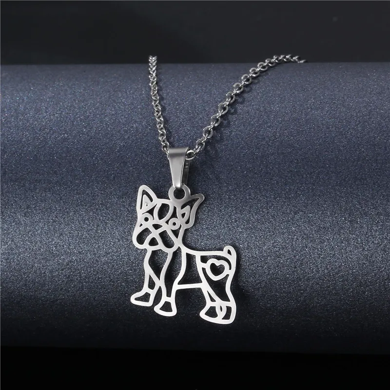 Cute Dog Gold And Silver Color Pendant NecklaceStainless Steel Dog Pendant Collarbone Chain Jewelry