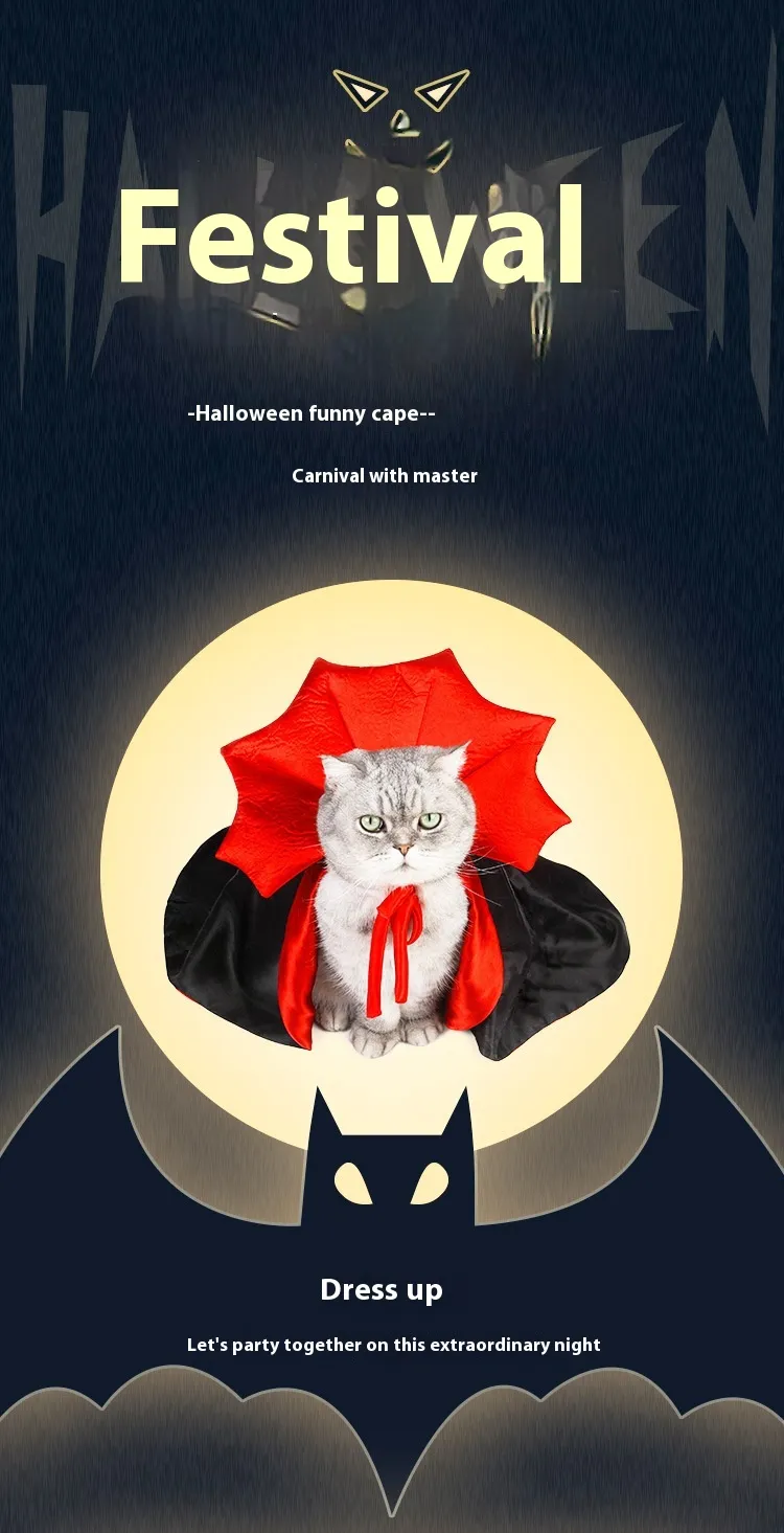 Make this Halloween one to remember with our Cute Halloween Pet Costumes! Whether you're celebrating with family, attending a spooky event, or just showing off your pet's adorable style on social media, this Vampire Cloak will make your pet the center of attention. Available in a range of sizes to fit small dogs, cats, and puppies, it's the perfect addition to your Halloween festivities.