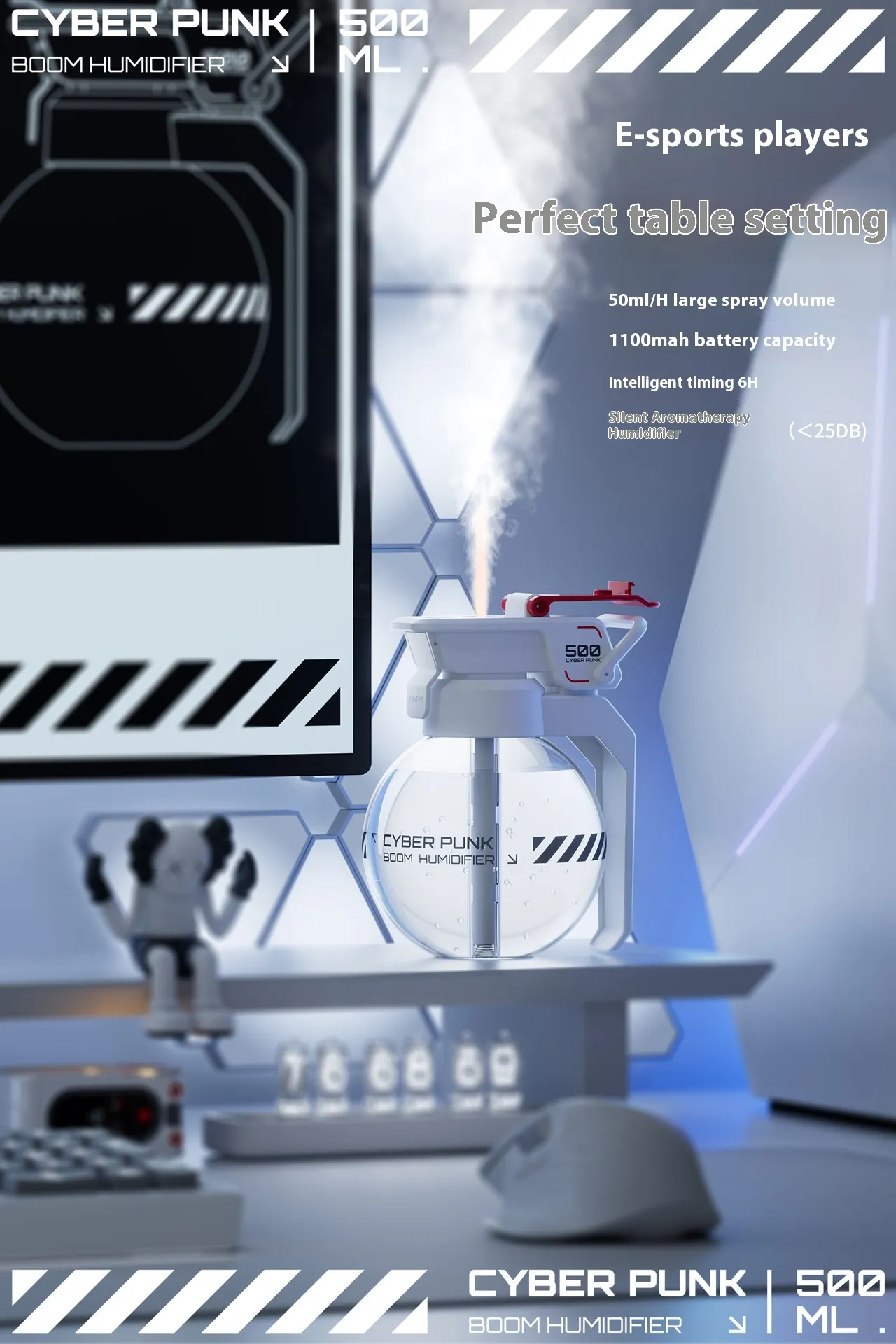 Aesthetic and Functional: The cyberpunk design adds a futuristic touch to your space, while the humidification function improves your environment in a practical way.