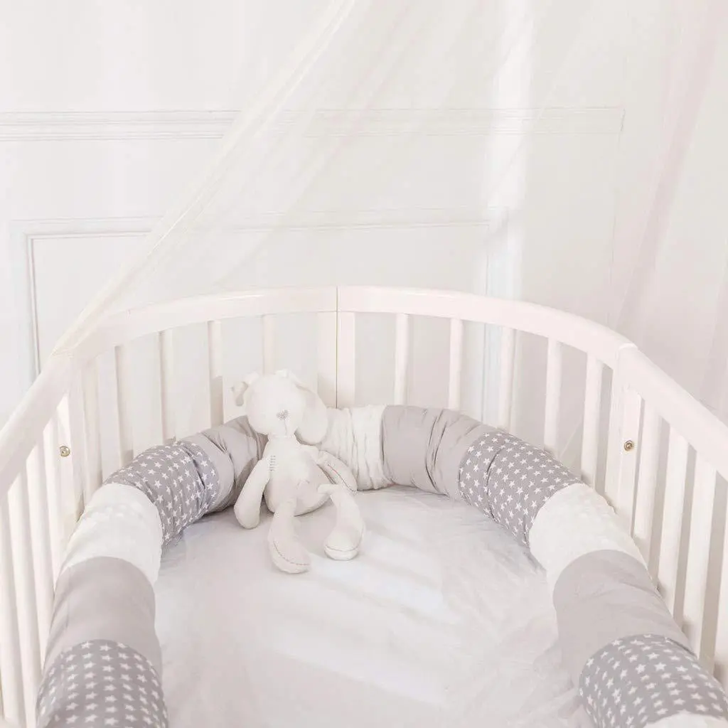 The cylindrical shape provides a thick and cushioned barrier, preventing your baby from bumping into the crib’s hard surfaces while adding a stylish touch to the nursery.