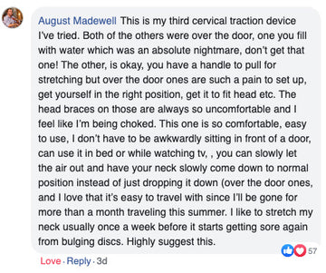 gently stretching your neck, and decompressing your spine - allowing bulging, or herniated discs to retract, and repair.
