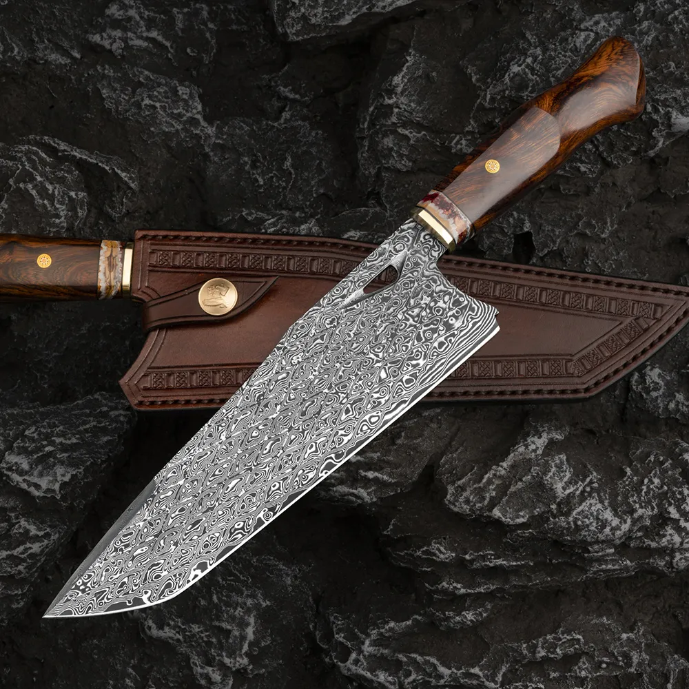 In conclusion, the Damascus Steel Kitchen Knife Professional Kitchen Chef's Knife is a high-performance kitchen tool that offers exceptional sharpness, durability, and comfort. Its stunning design, combined with its precise and reliable cutting ability, makes it an essential piece for both professional chefs and home cooks. If you’re looking for a knife that delivers top-notch performance, durability, and elegance, the Damascus Steel Kitchen Knife is the perfect choice for you.