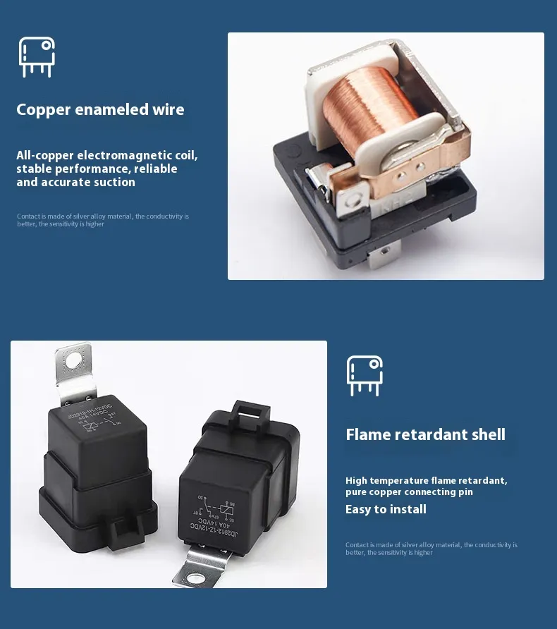 For automotive users, it supports switching of lights, fans, pumps, and auxiliary systems with reduced stress on control switches and electronics. For industrial and automation applications, it delivers dependable action in control panels and machinery interfaces. For DIY electronics builders, it provides a clear and maintainable switching solution that integrates easily with project designs.