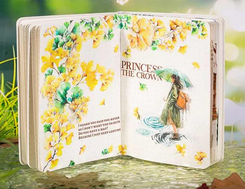 Nature-Inspired Designs: The stickers feature intricate illustrations of autumn leaves, trees, and poetic elements,