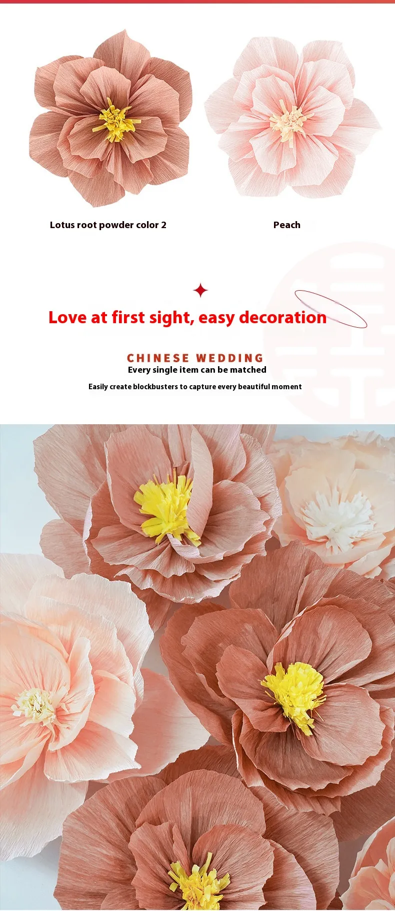 Color: pleated nectar peach color, pleated lotus root starch, pleated wine red