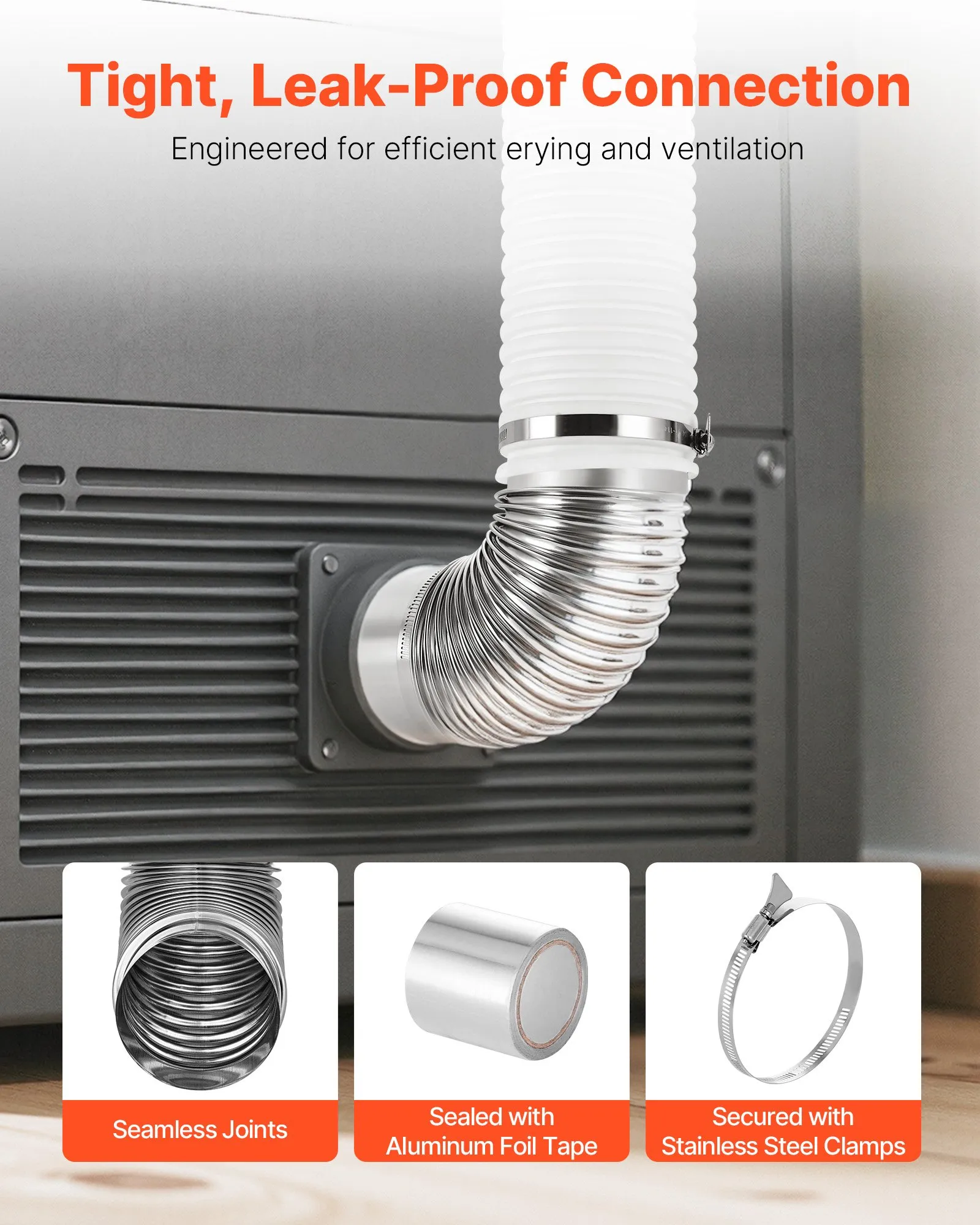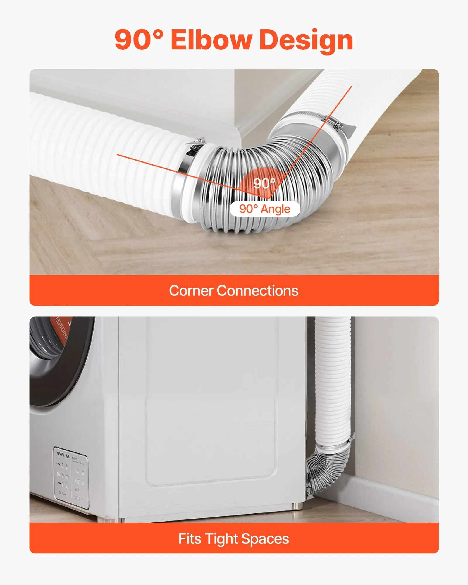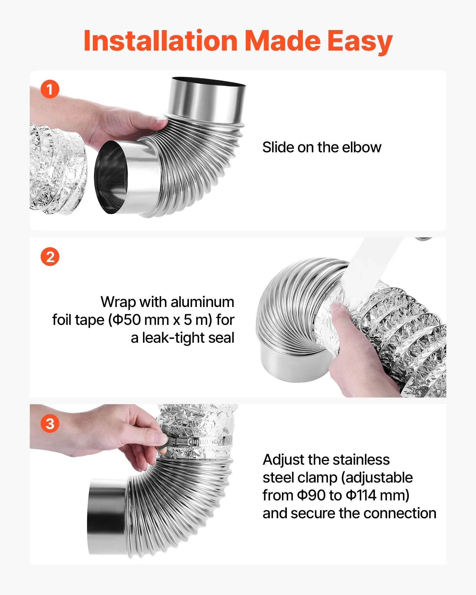 allowing for quick and easy installation. The flexible design makes it easier to route the vent through tight spaces, ensuring a secure and