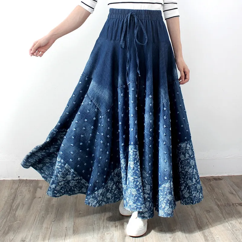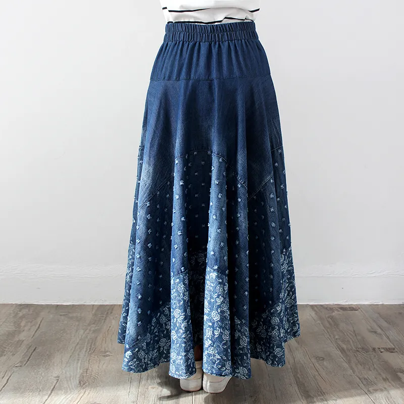 Denim Skirt, Half-length, Large-length Skirt, Printed High-waisted Skirt