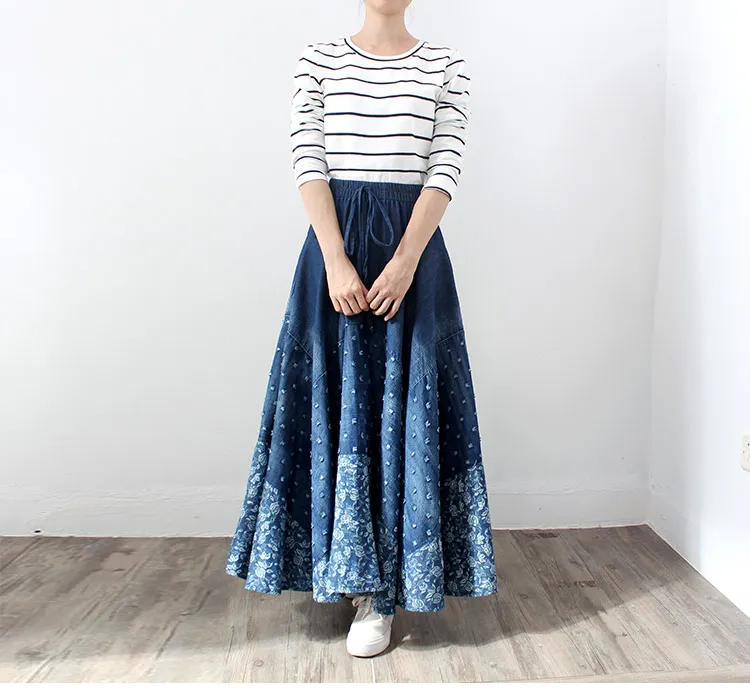 Denim Skirt, Half-length, Large-length Skirt, Printed High-waisted Skirt