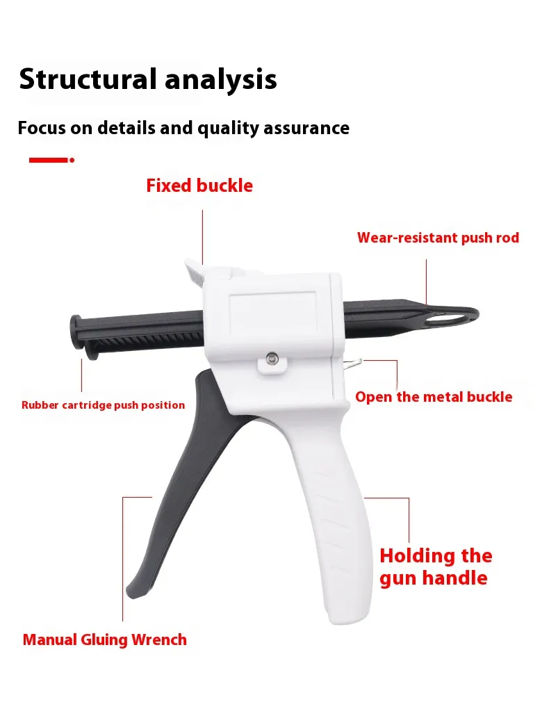Built from durable medical-grade materials, this silicone gun is engineered for long-term use in clinical environments. The ergonomic handle and balanced weight make it comfortable to use, even during long procedures. The manual trigger mechanism allows for controlled extrusion, ensuring the perfect mix ratio and consistency every time.