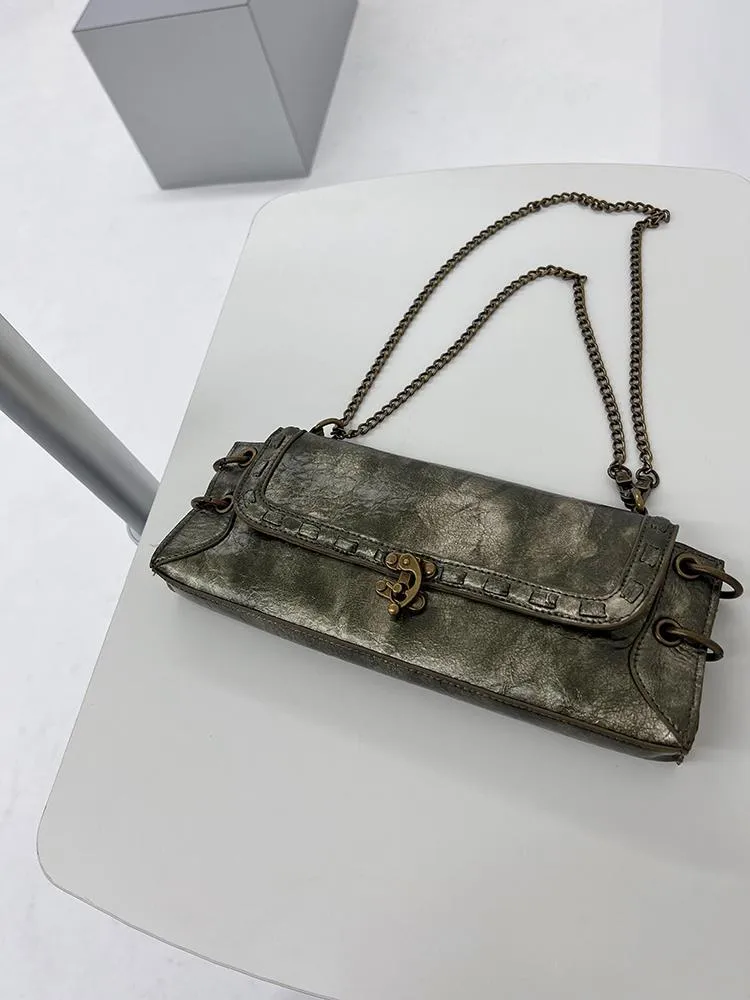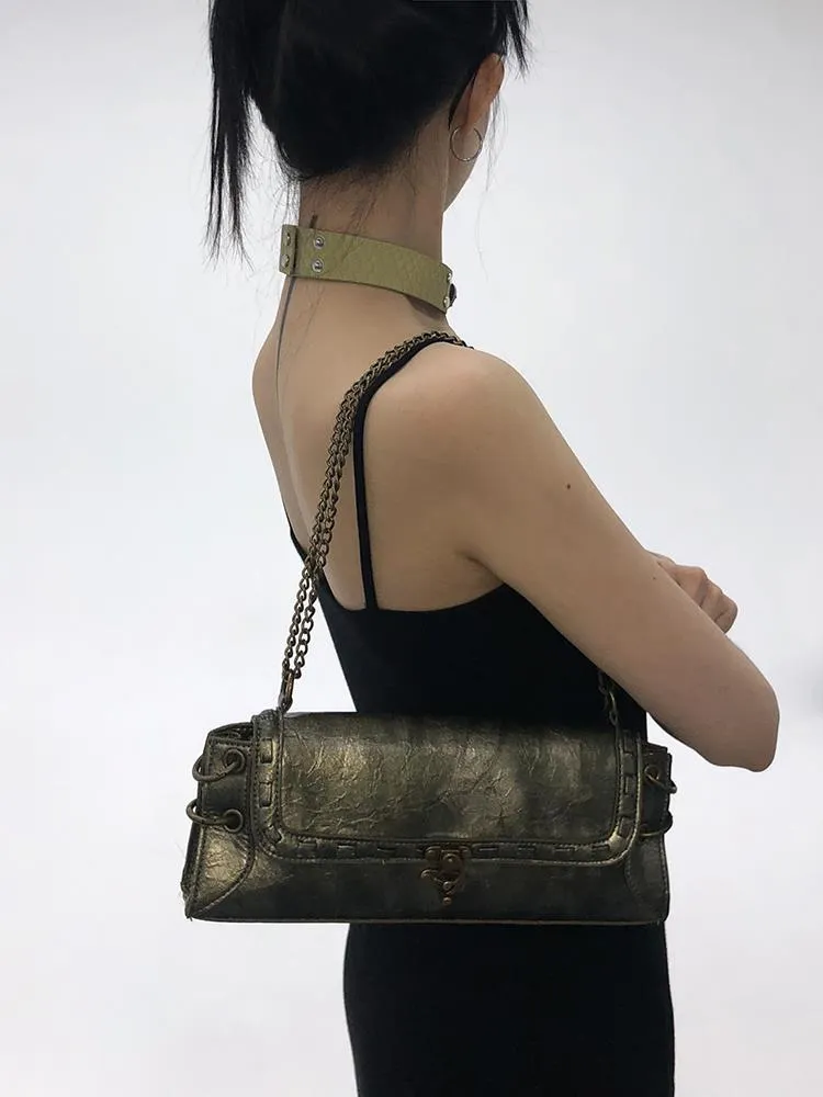 Design One-shoulder Lock Bronze Gold Crossbody Bag