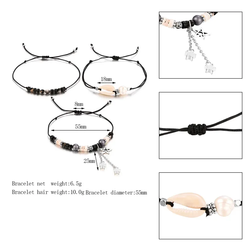 Design Star Tassel Pendant Black Bracelet