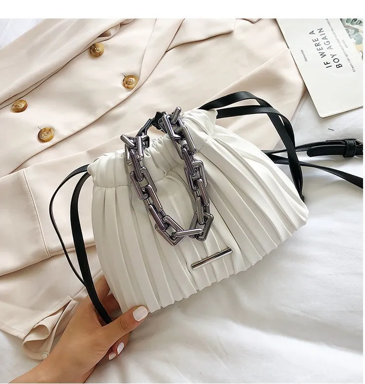 The Designer Drawstring Bucket Bag with Thick Chain is versatile enough for any occasion, whether you’re heading to the office, out shopping, or attending a night out. The combination of the casual bucket shape and bold chain strap makes it a unique accessory that’s both trendy and functional. Its spacious interior ensures you can carry all your essentials, making it ideal for women on the go.