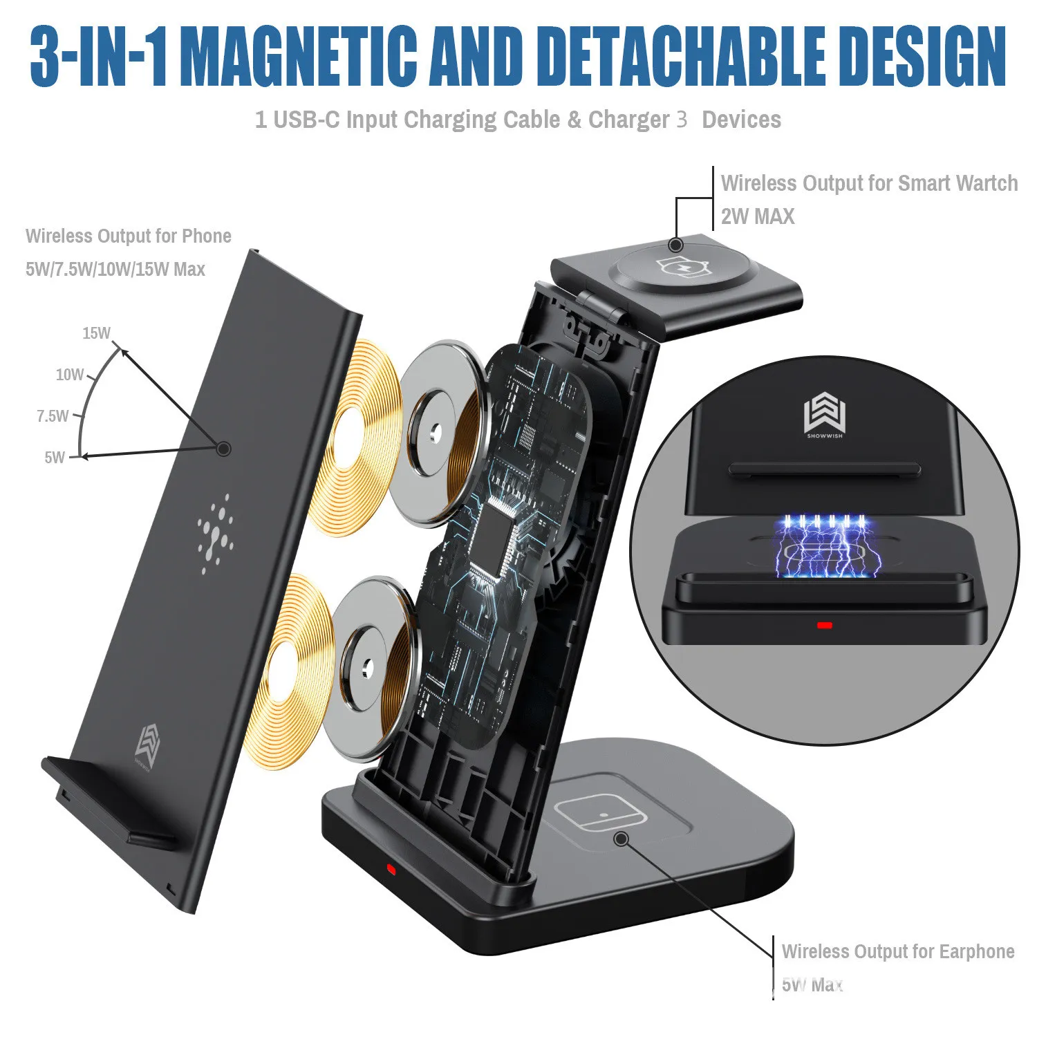 With fast wireless charging capabilities, the charger ensures your devices are ready to go quickly. You don’t have to wait long to get your phone, tablet, or any other device back up to full power. The efficient and high-speed charging technology ensures minimal downtime for all your gadgets.