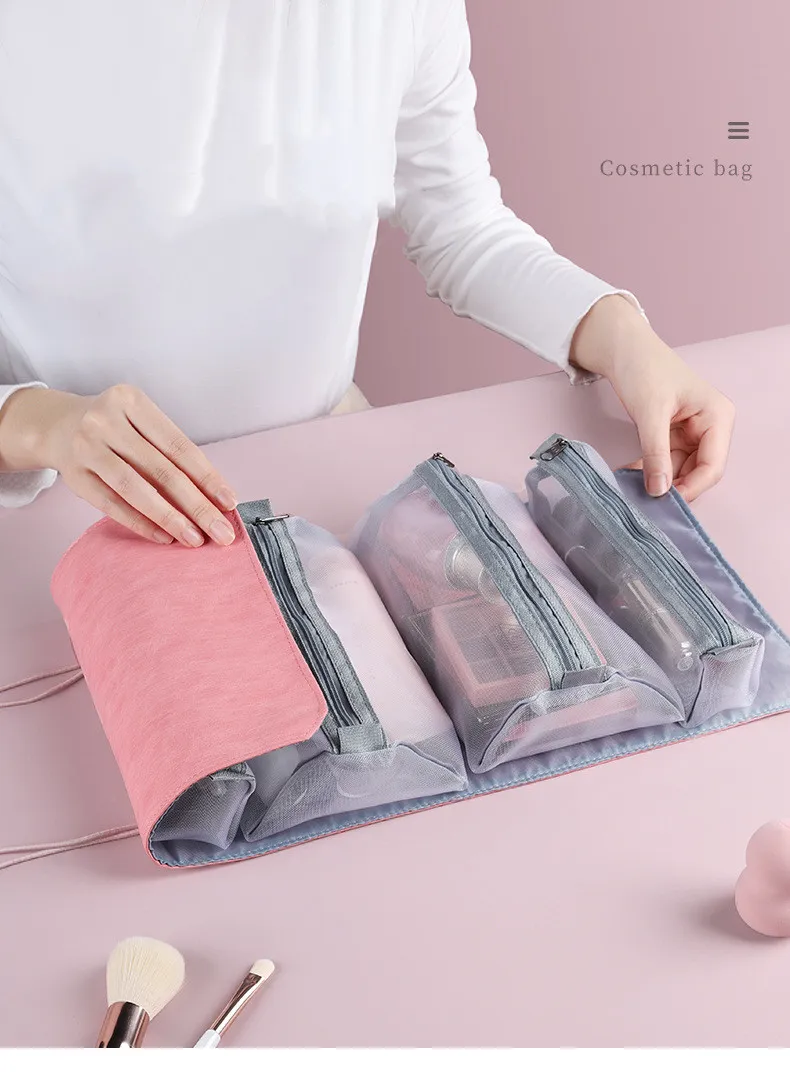 Detachable Make-Up Bag Foldable Box Large Capacity 4-Room Travel Portable Inner Zipper Cosmetic Pack with Handle