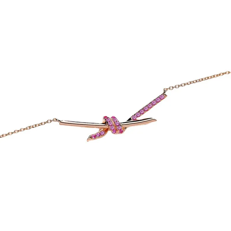 Diamond Bends And Hitches Necklace 18K Rose Gold Cross