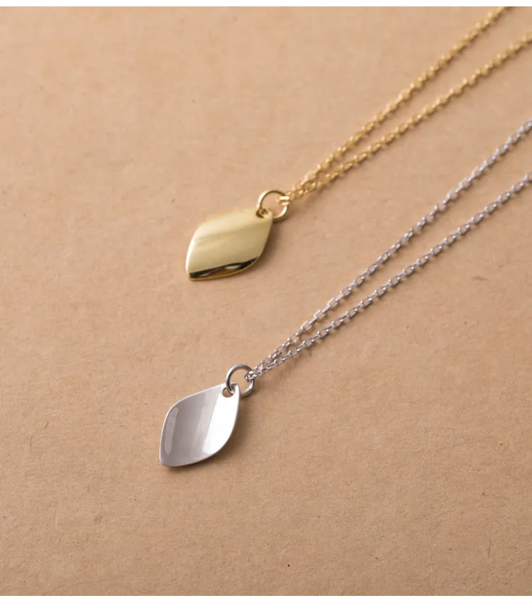 The curved shape of the pendant creates a flowing, graceful silhouette that adds a sense of movement and fluidity to the necklace. The simple, elegant curves make it an eye-catching piece without being overpowering, offering a subtle yet luxurious look.