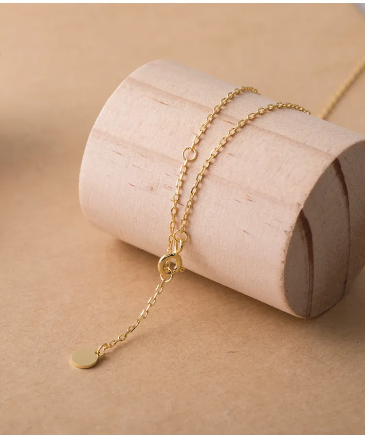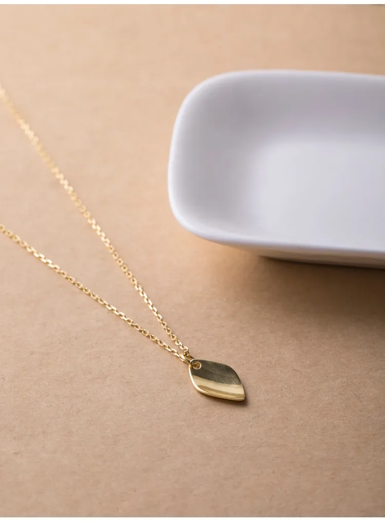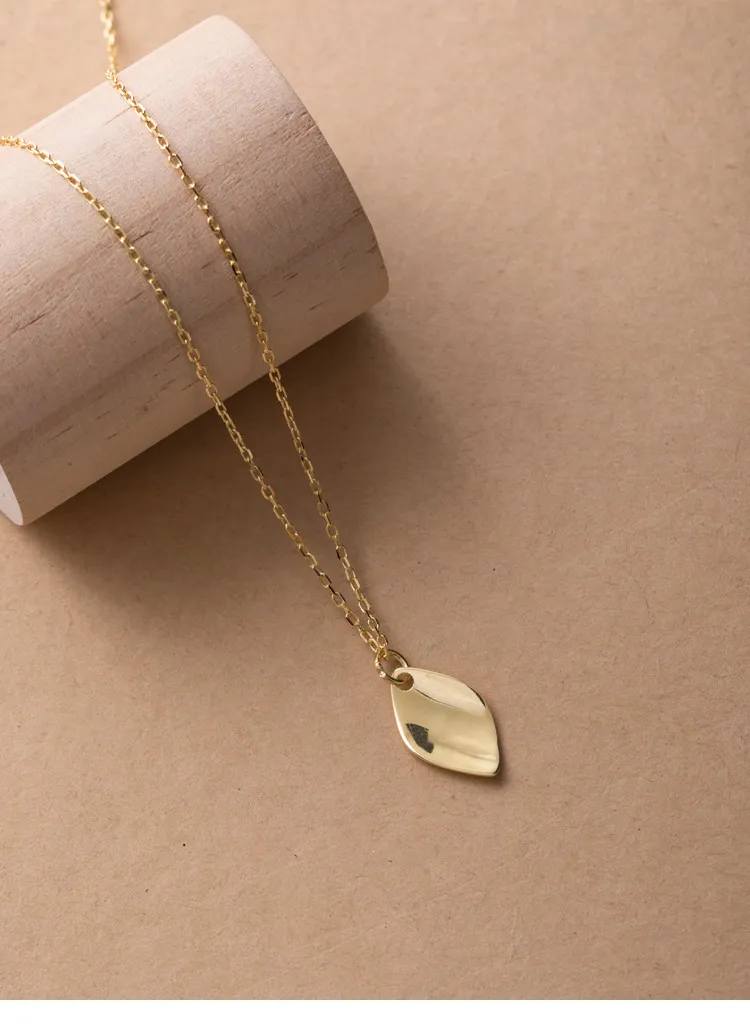 The curved shape of the pendant creates a flowing, graceful silhouette that adds a sense of movement and fluidity to the necklace. The simple, elegant curves make it an eye-catching piece without being overpowering, offering a subtle yet luxurious look.