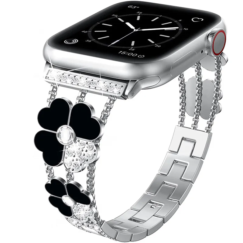 Diamond-Set Resin Clover Metal Strap
