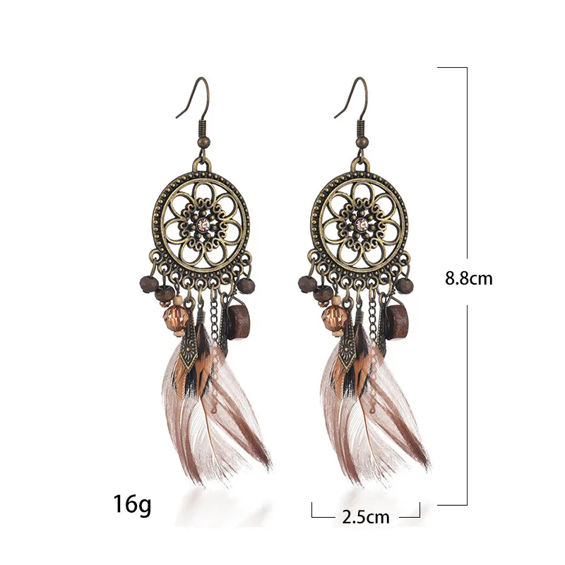 Why Choose Diamond-Studded Wood Bead Feather Earrings?