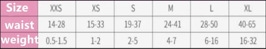 Specifications: Bitch SSS, Bitch SS, Bitch S, Bitch M, Bitch L, Bitch XL, Male Dog S, Male Dog M, Male Dog L, Male Dog XL