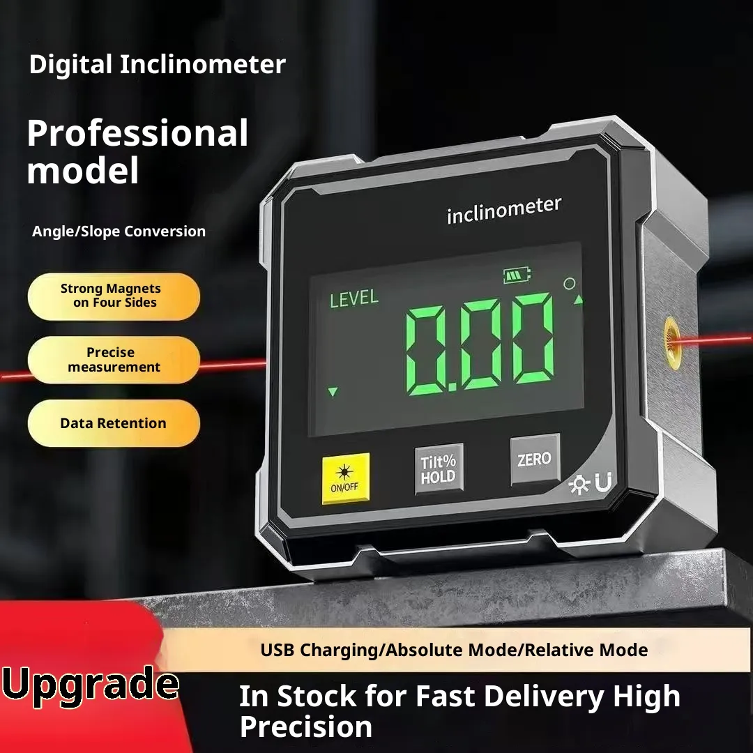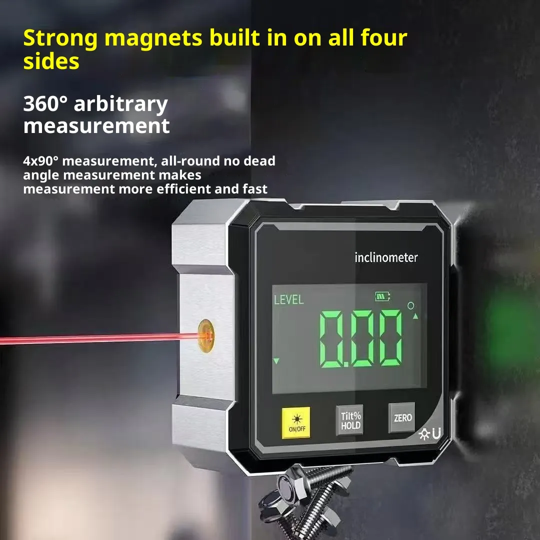 The Digital Angle Finder with Laser – 4-Side Magnetic Inclinometer Gauge with Backlight is a premium precision tool engineered to deliver reliable angle and slope measurements with enhanced visibility and flexibility. It combines four distinct measurement faces, a magnetic base for secure attachment, a laser reference line for visual alignment, and a backlit digital display that ensures readability in varied lighting conditions. This level of integration makes it a standout solution for complex measurement challenges or environments where traditional bubble levels and manual protractors fall short.