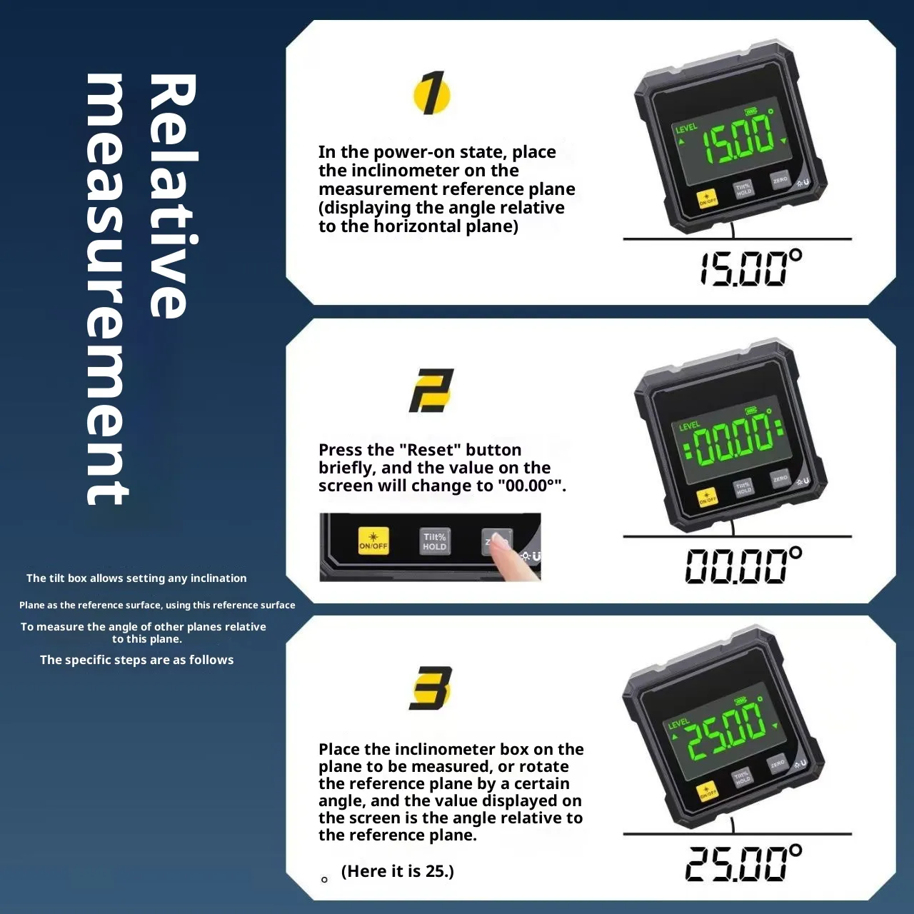 DUAL MODE PRECISION MEASUREMENT – Absolute Mode ensures precise leveling with a reference line, while Relative Mode allows zeroing at any angle for versatile measurements, ideal for professionals in construction, carpentry, and engineering.