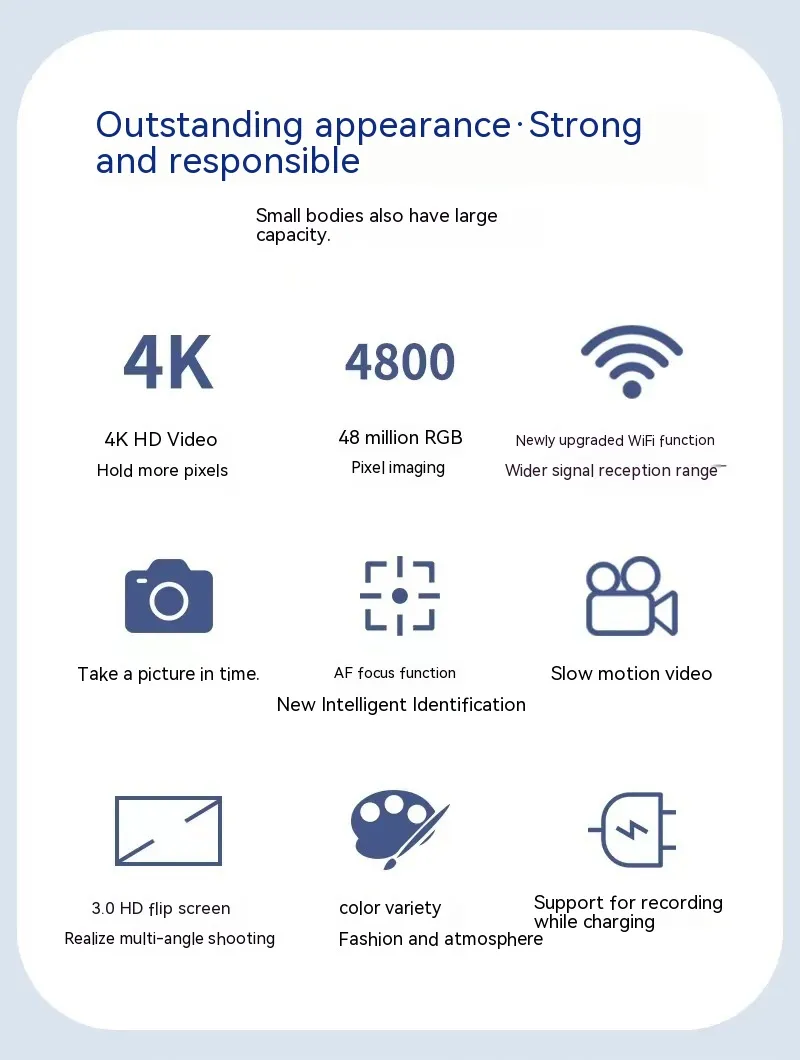 The compact design allows you to easily take it along wherever you go. Whether you're capturing family moments at home or shooting your next travel adventure, this camera is designed for mobility and convenience.