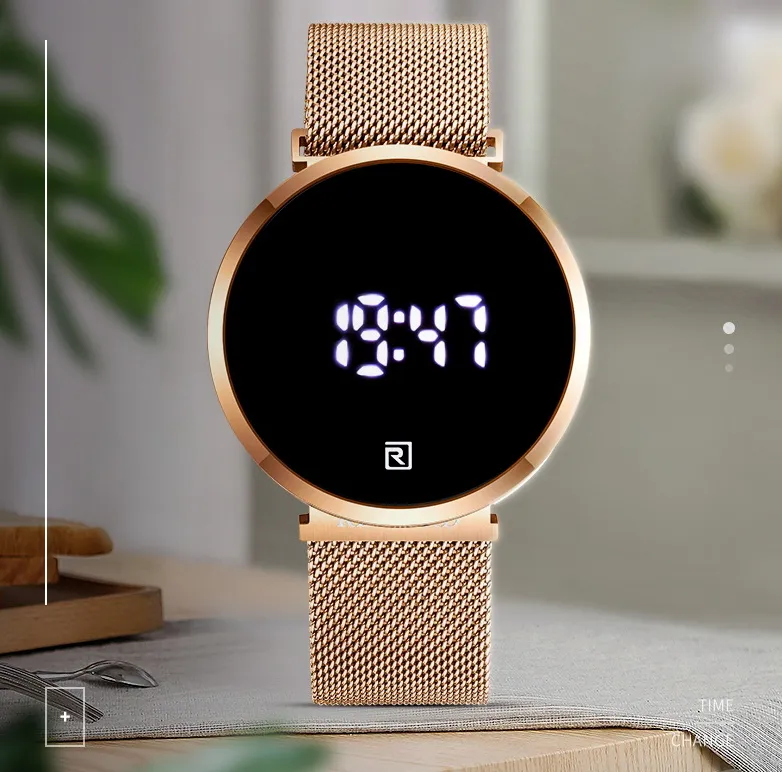 The watch features a clean, modern digital display housed in a durable, yet luxurious case. Available in a variety of colors, the sleek and minimalist design makes it perfect for both men and women. Whether you're in a meeting or at the gym, this watch fits seamlessly into any setting.
